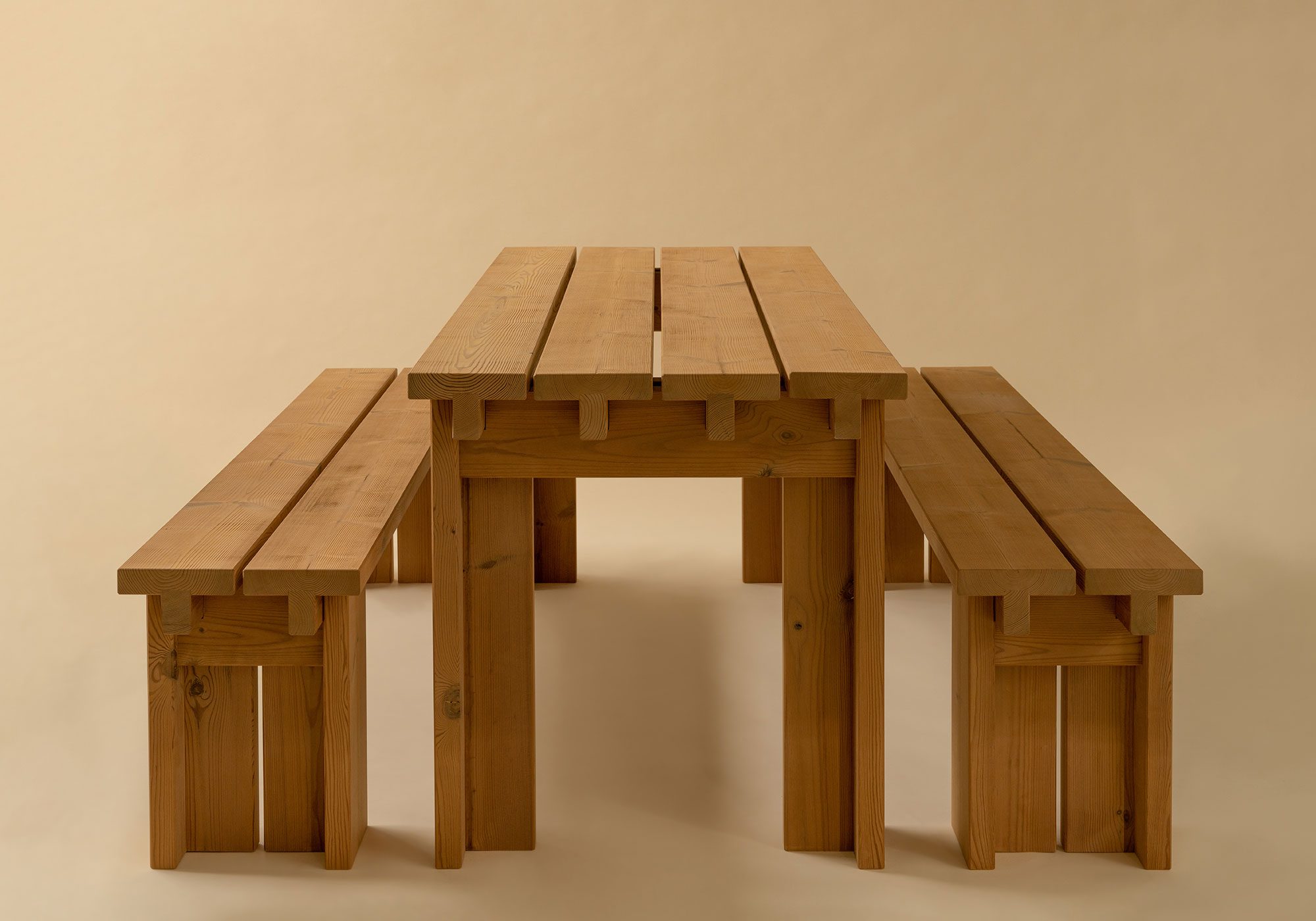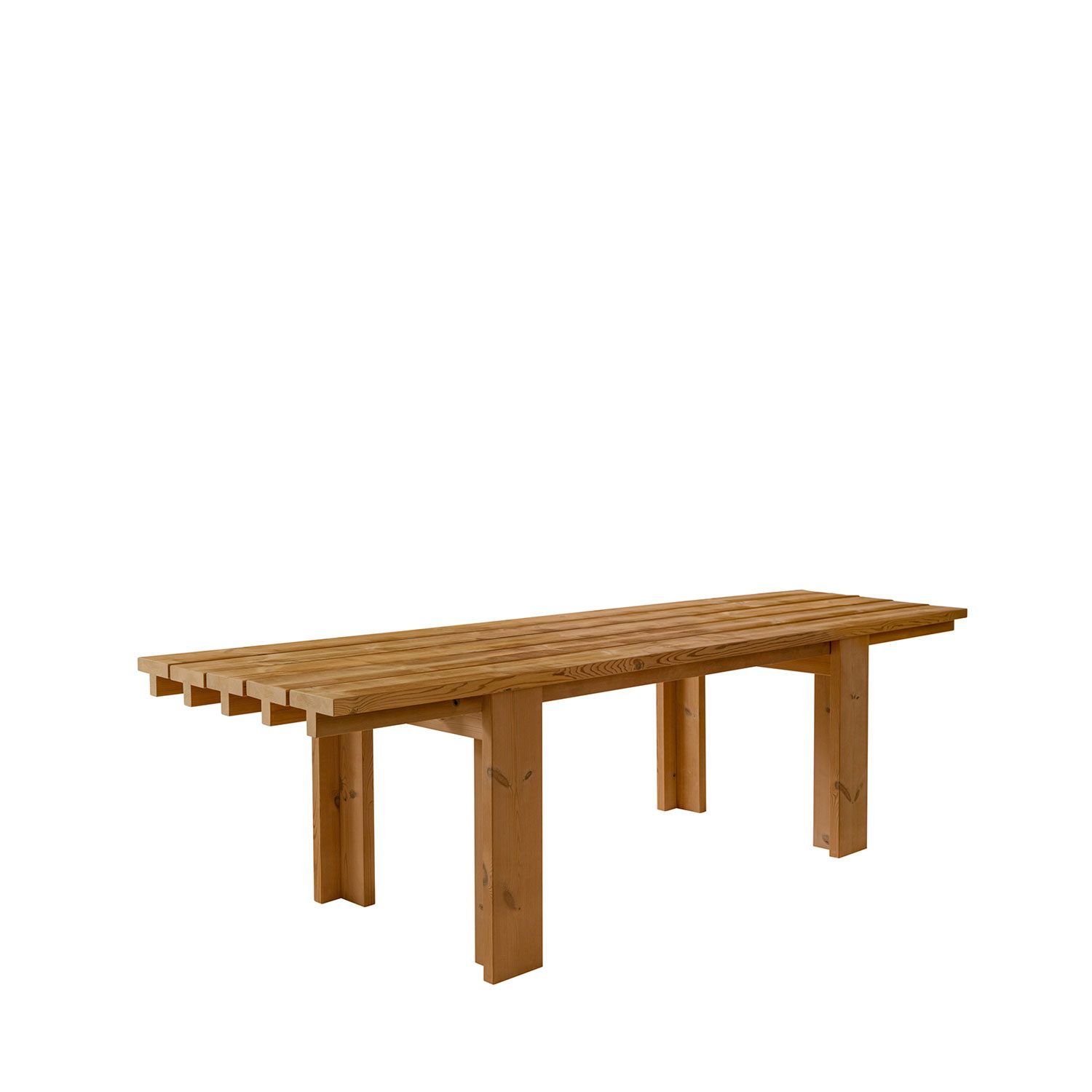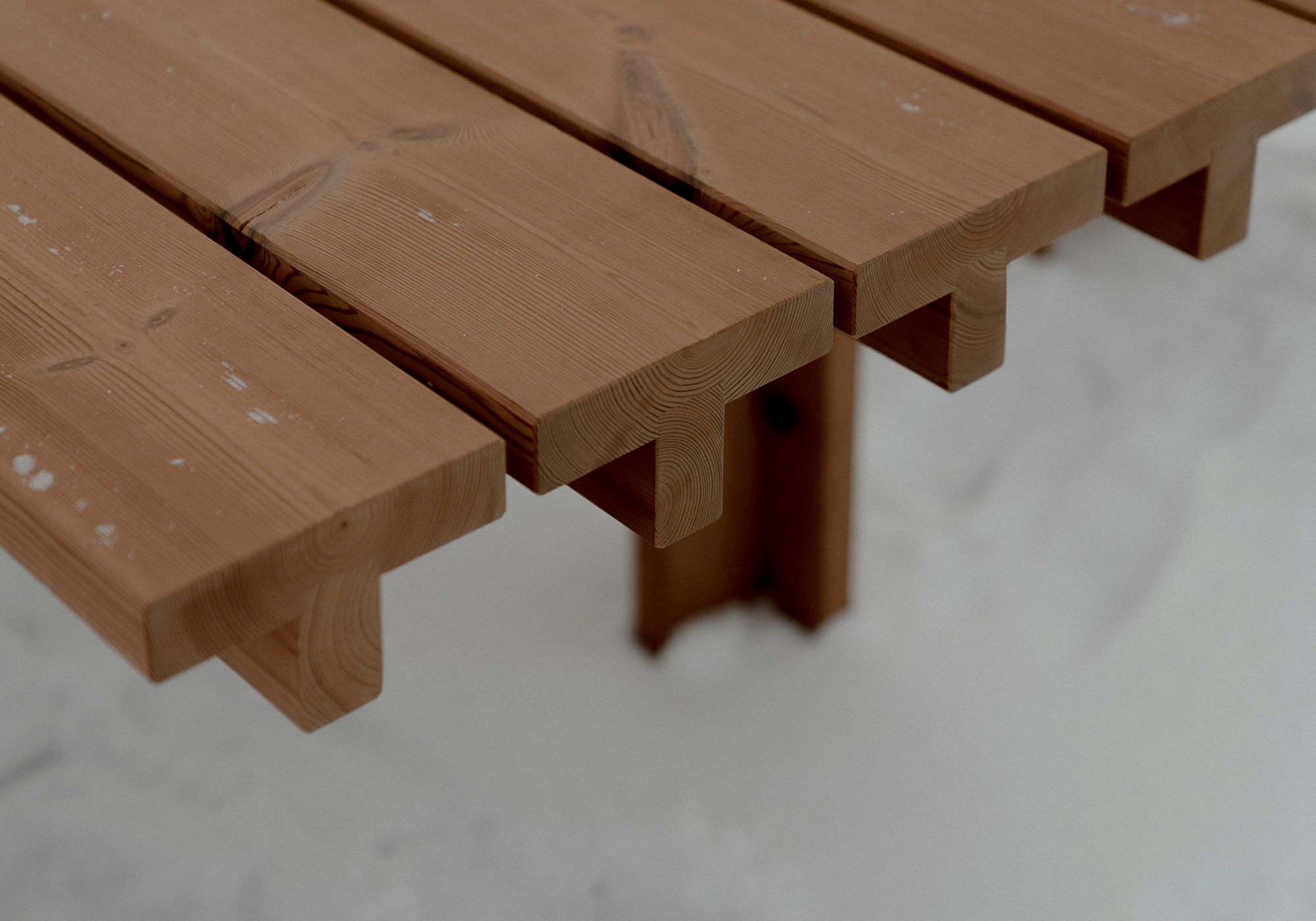 The innovative heat-treated pine used in the Osa Outdoor Dining Table is stronger, lighter and better suited to withstanding the elements than its indoor alternative. Henrik Tjaerby’s design uses a standardised T shaped section and minimal components in a modular system. The ingenuity of construction means that Osa Tables and Benches can be span great lengths. Osa is an explicitly functional design that is robust, resilient and adaptable.