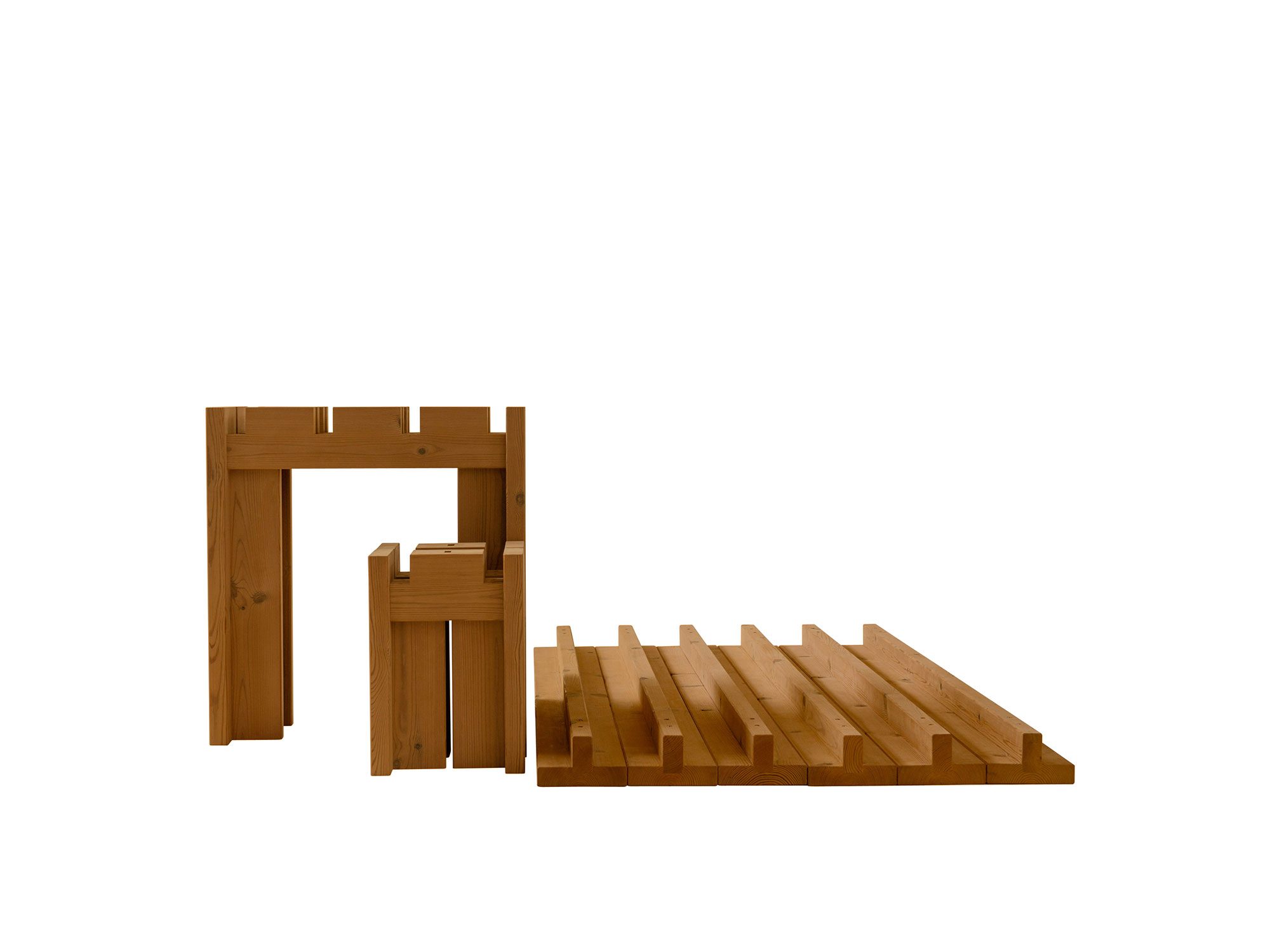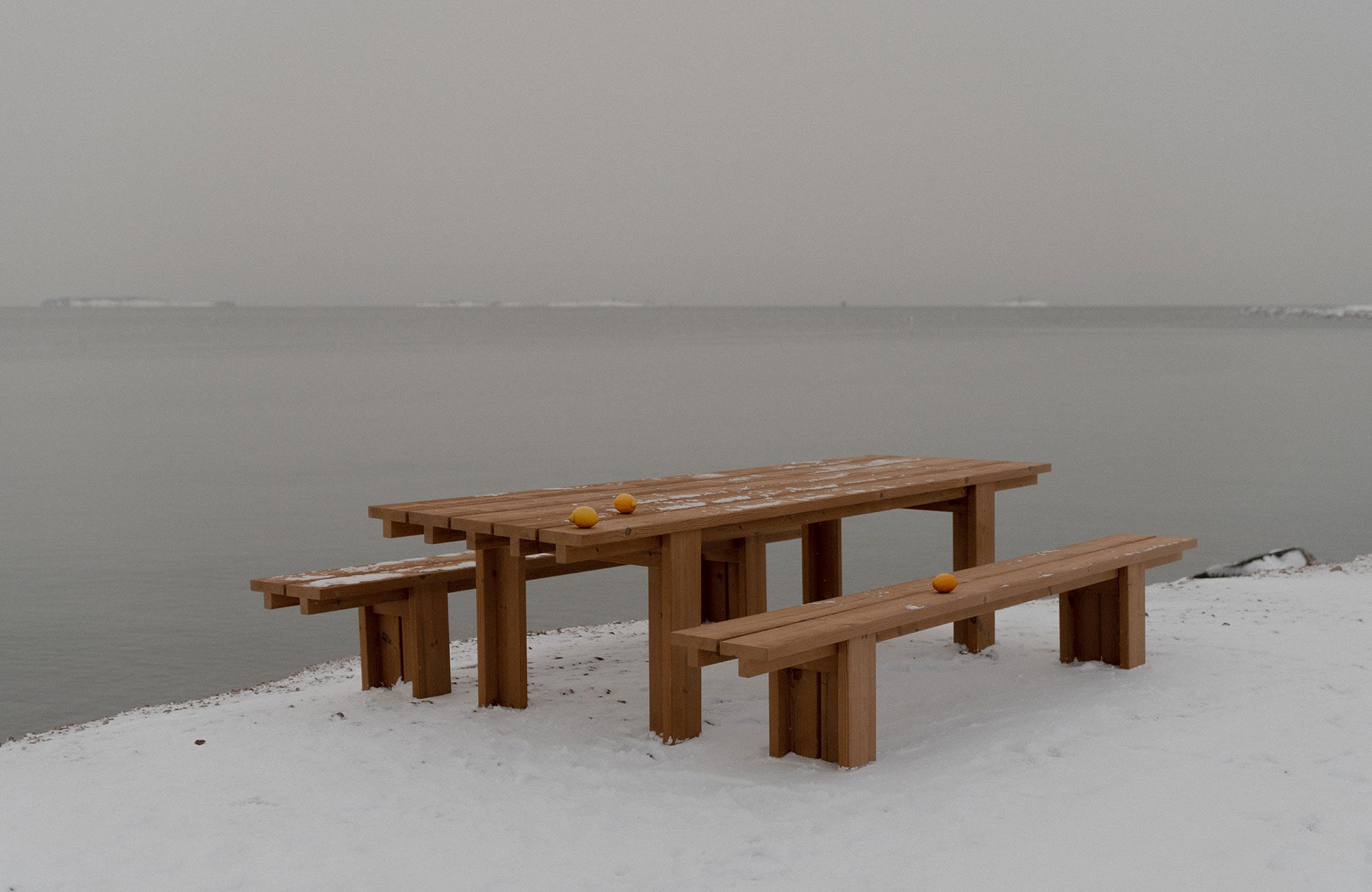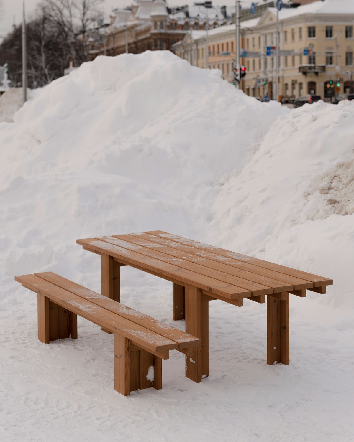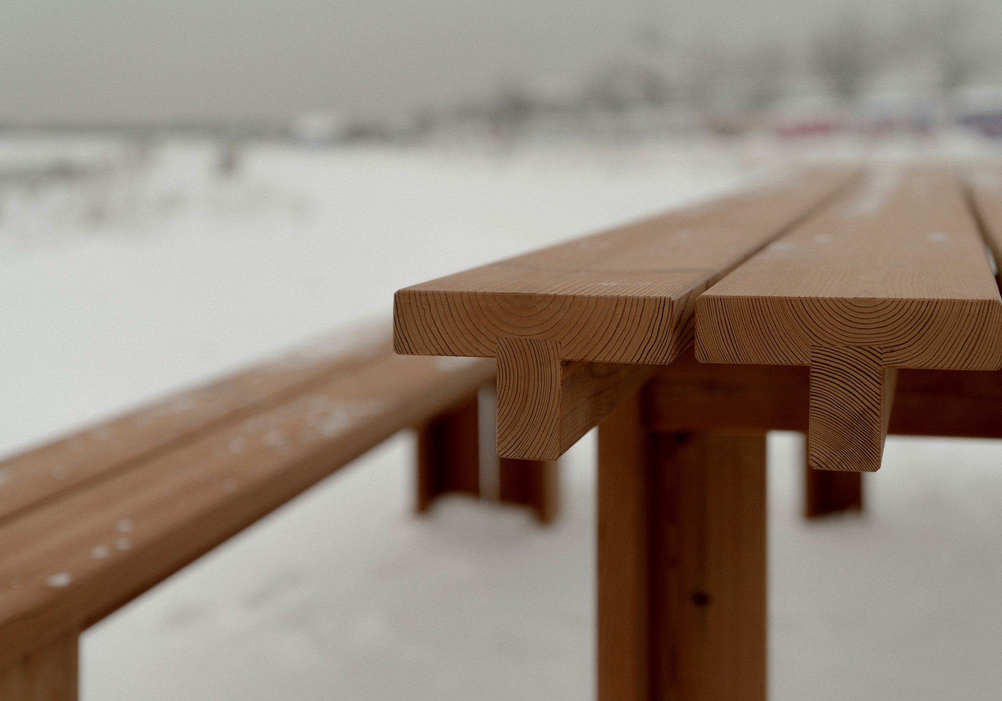 The innovative heat-treated pine used in the Osa Outdoor Dining Table is stronger, lighter and better suited to withstanding the elements than its indoor alternative. Henrik Tjaerby’s design uses a standardised T shaped section and minimal components in a modular system. The ingenuity of construction means that Osa Tables and Benches can be span great lengths. Osa is an explicitly functional design that is robust, resilient and adaptable.
