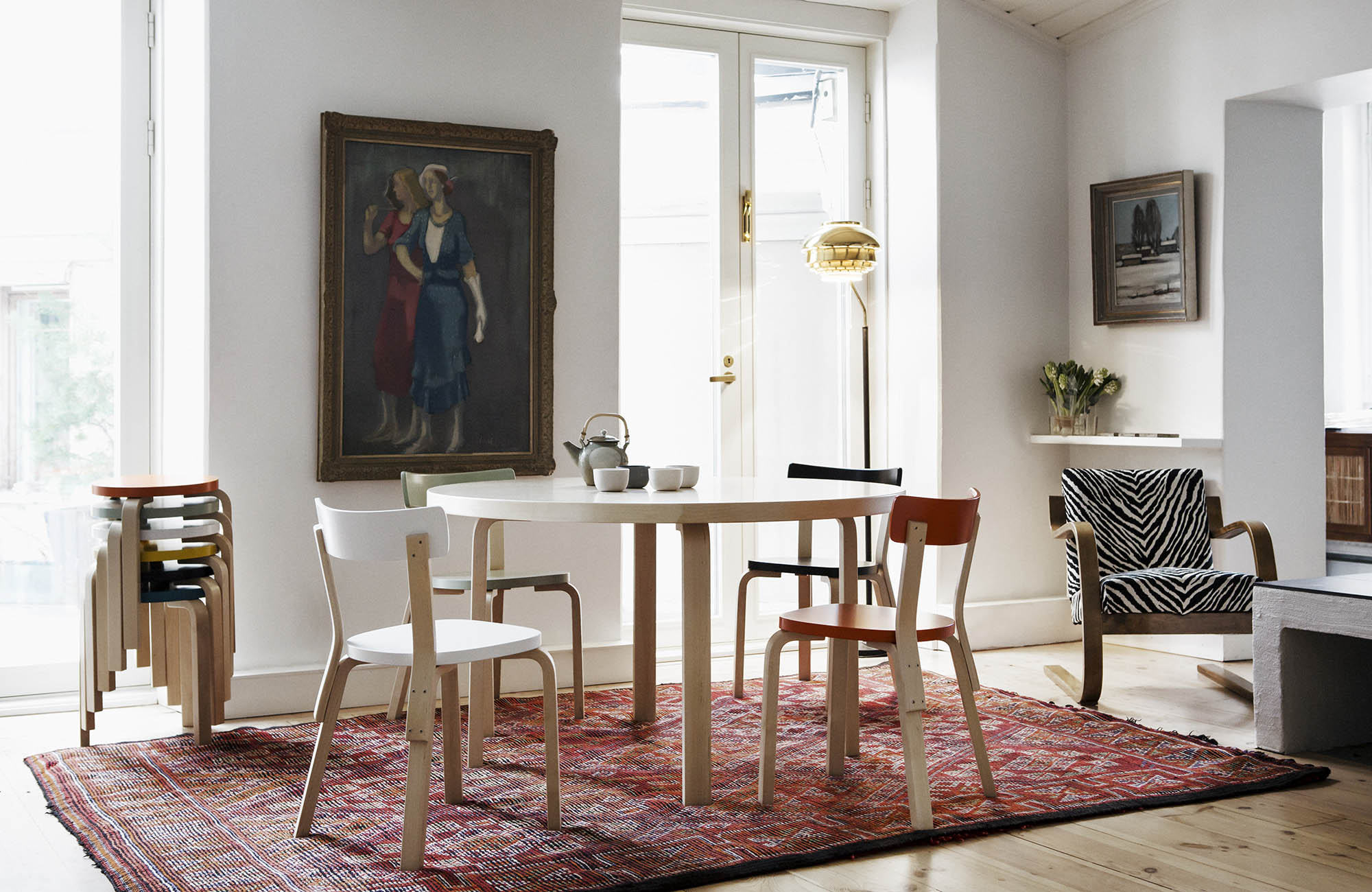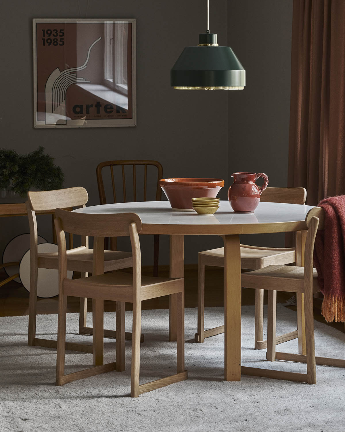 The round Aalto table is available in different dimensions. The larger sizes are ideally suited as dining tables in both private homes and restaurants and pair well with the a number of dining chairs in the Artek range, such as the Domus chair or the Chair 61, while the smaller ones fit perfectly in more compact dining spaces.