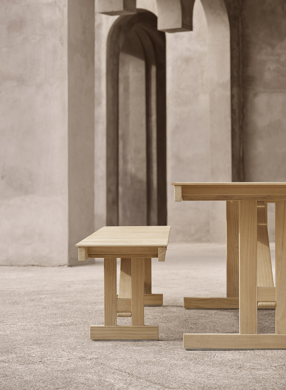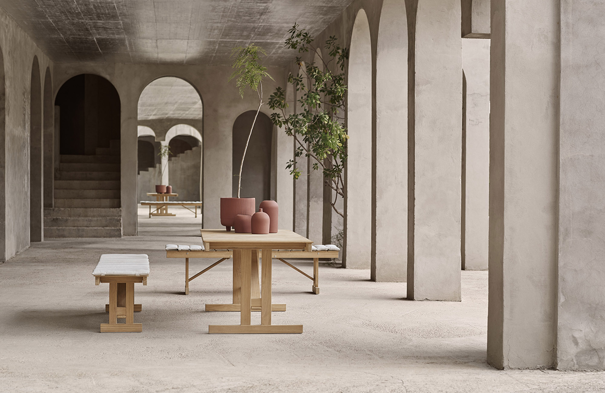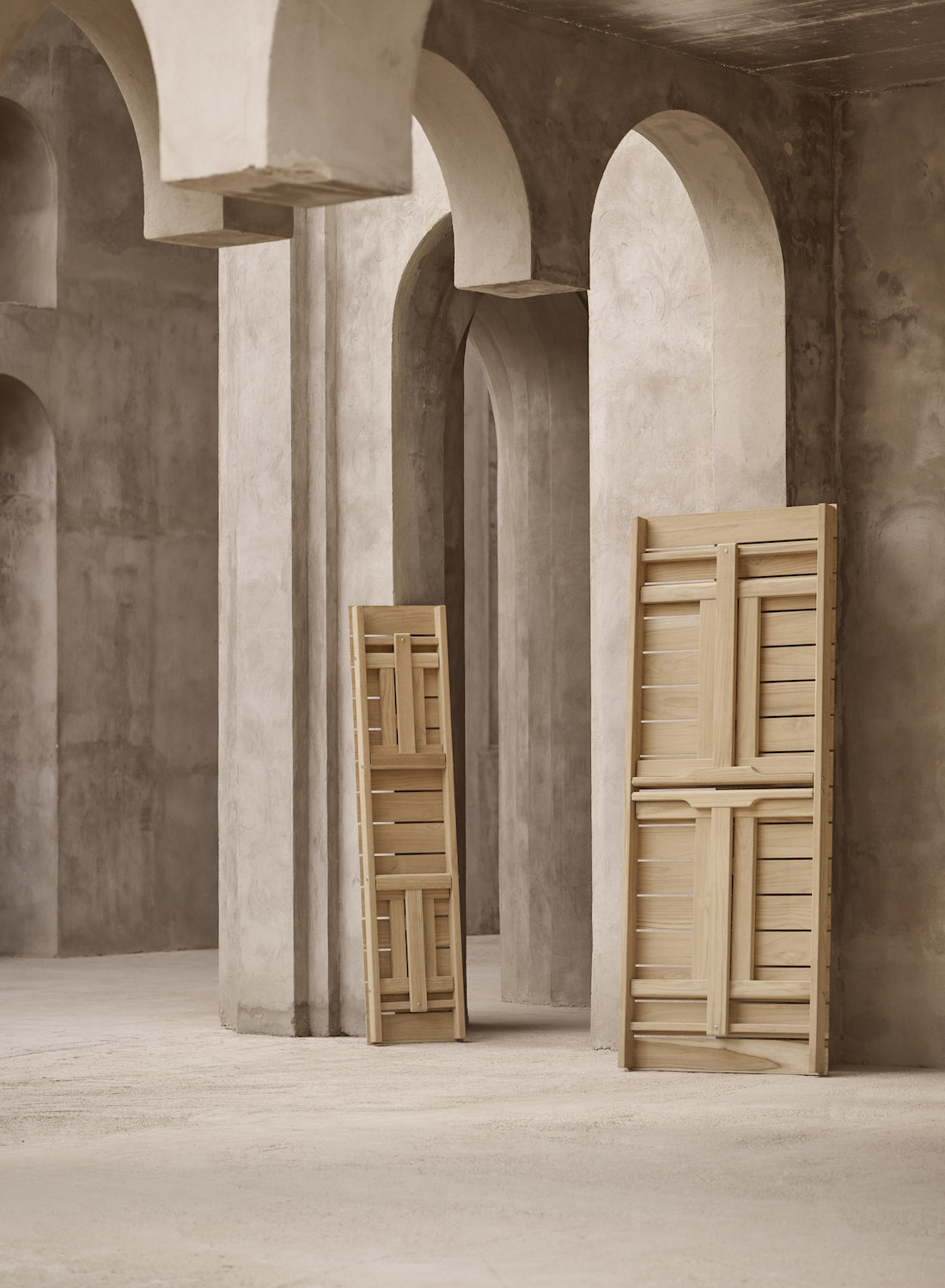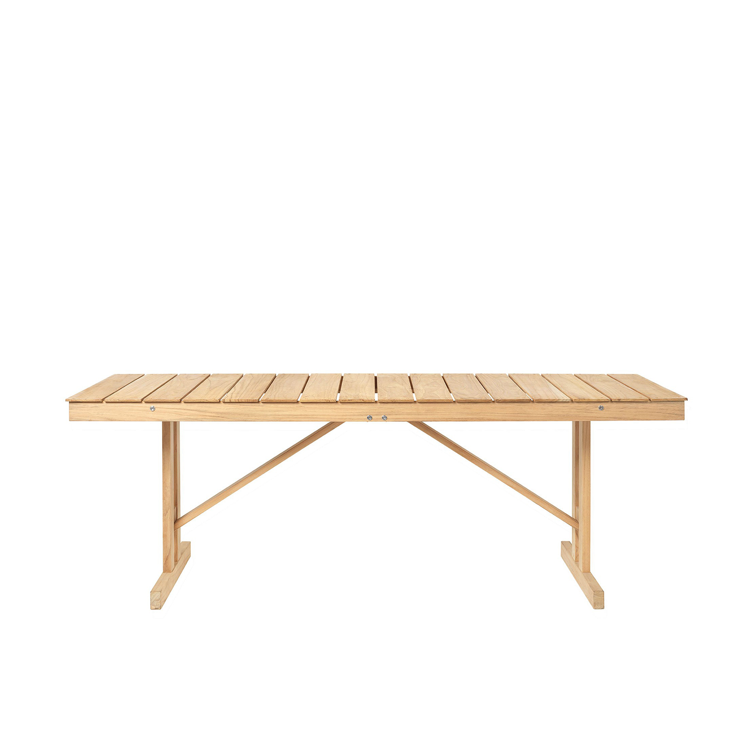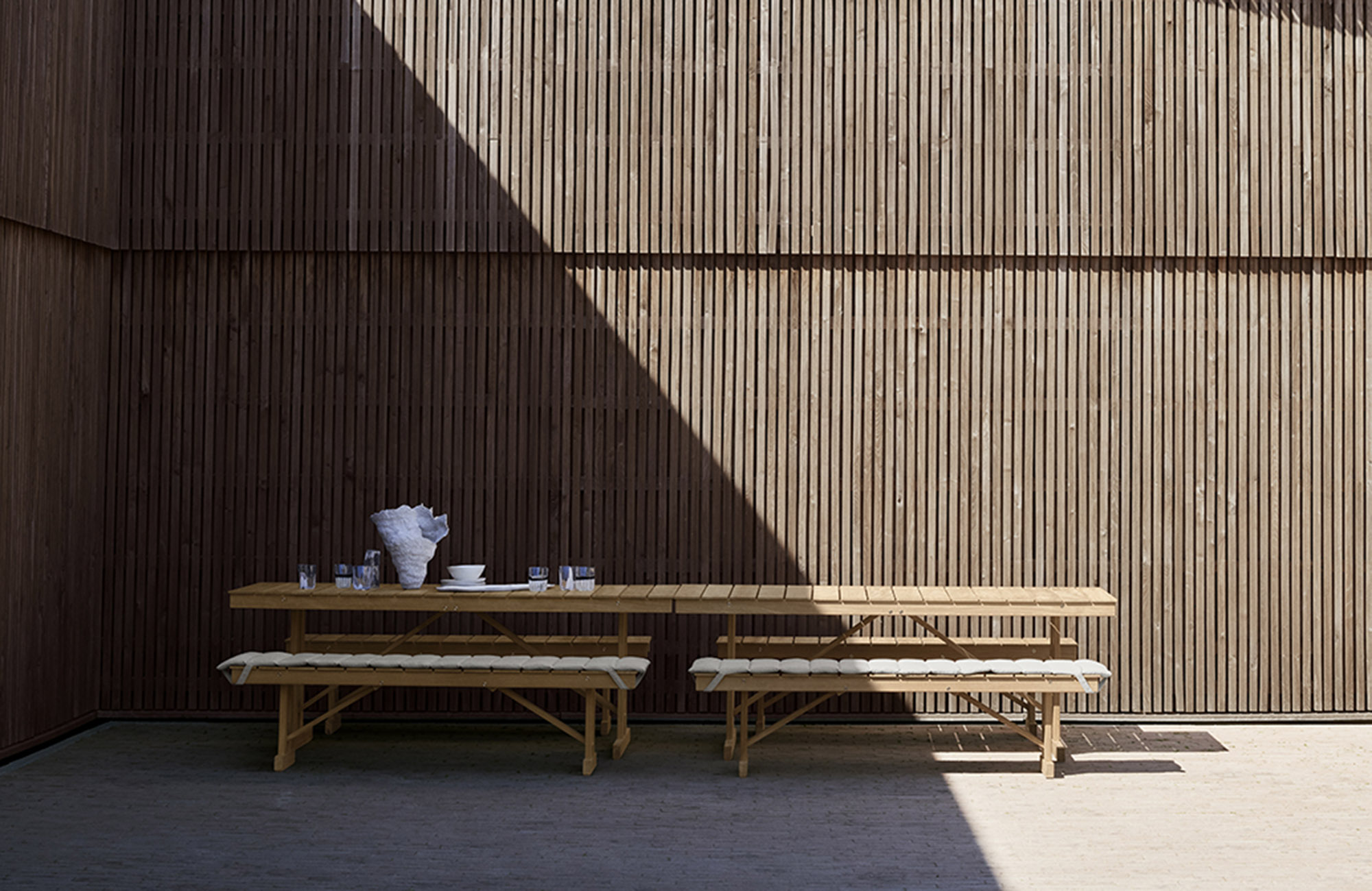 Referencing the simplicity of Shaker furniture, with clean lines and functional details, Børge Mogensen’s foldable Outdoor Table was designed back in 1971. Rediscovered by Carl Hansen & Søn, the iconic designer’s outdoor table and bench set is reworked to modern sensibilities, yet remains true to the spirit of its original design. Set on a sturdy but elegant wooden frame, graphic slats create a durable and decorative tabletop perfect for impromptu outdoor gatherings.