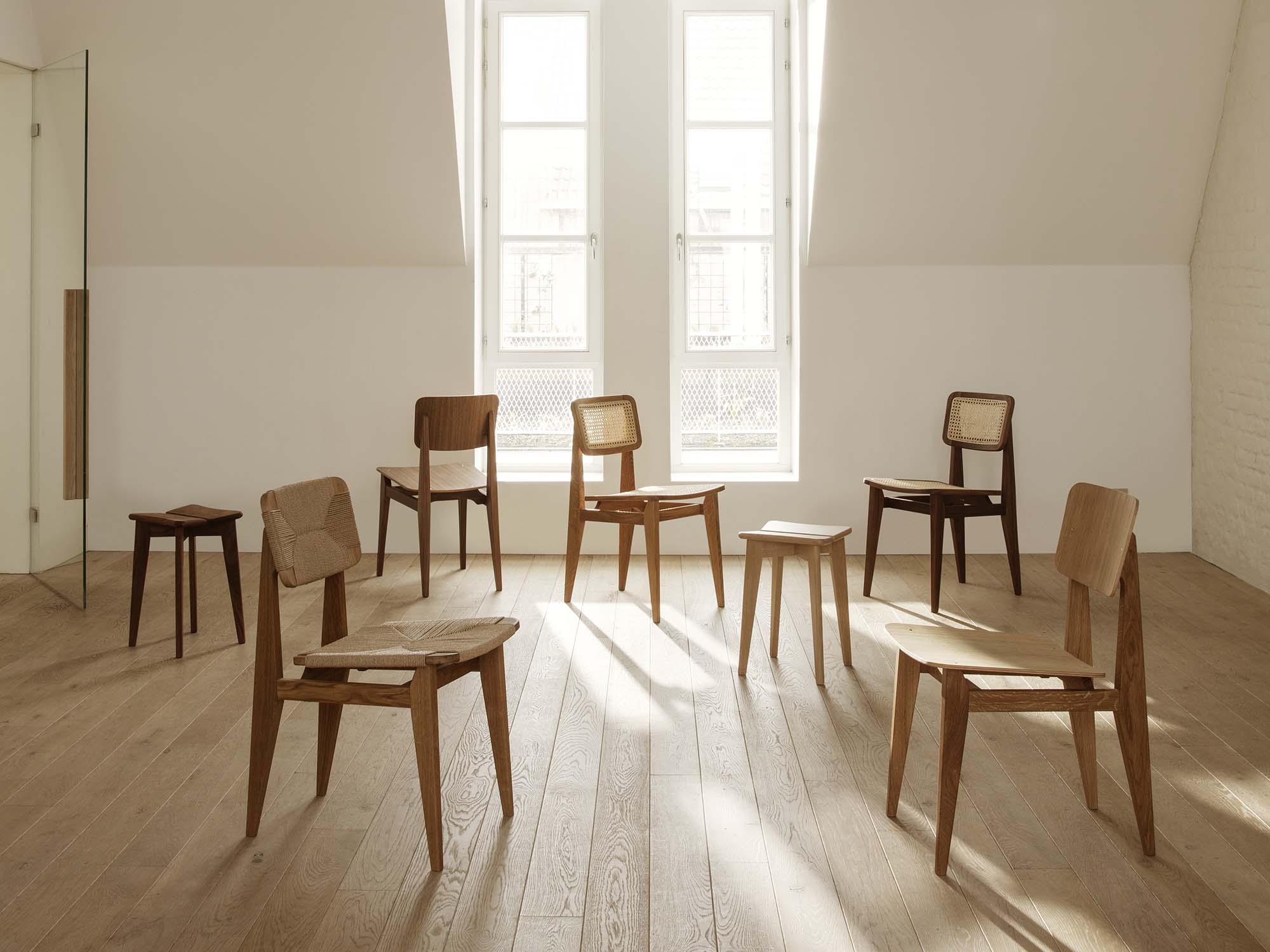 Minimalist elegance, high functionality and enduring comfort in perfect balance are what keep Marcel Gascoin’s iconic 1947 C-Chair feeling so vital and modern today. Designed as an innovative response to the tightly-spaced homes being built in postwar France, the refined aesthetics and craftsmanship are perfectly suited to contemporary living rooms, dining rooms and kitchens. The updated C-Chair’s sturdy wood frame and durable, hand-woven paper seat and backrest underpin its elegant shape and strong visual language.