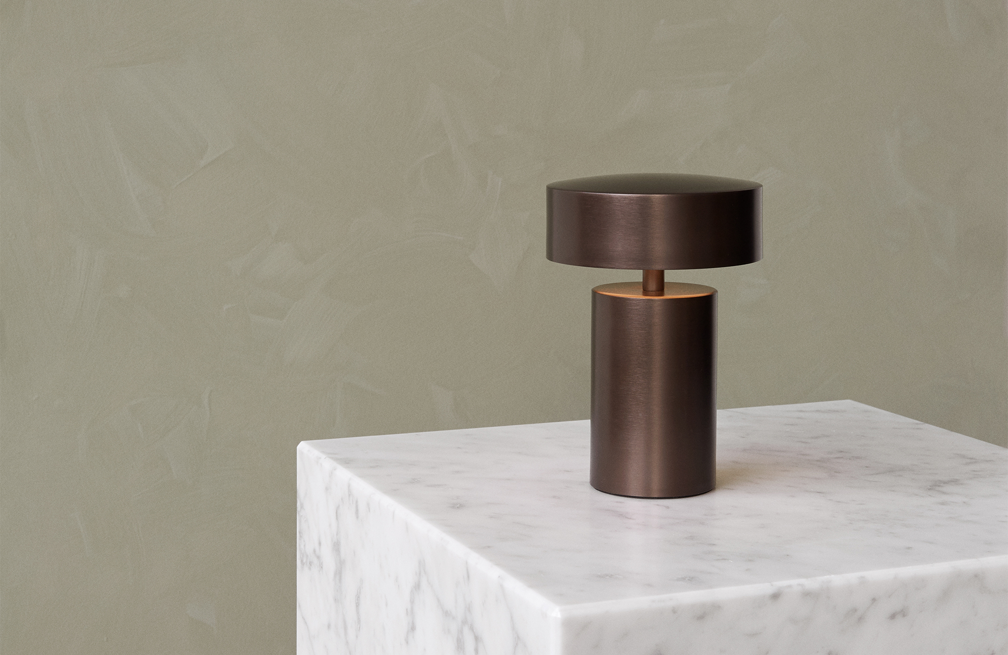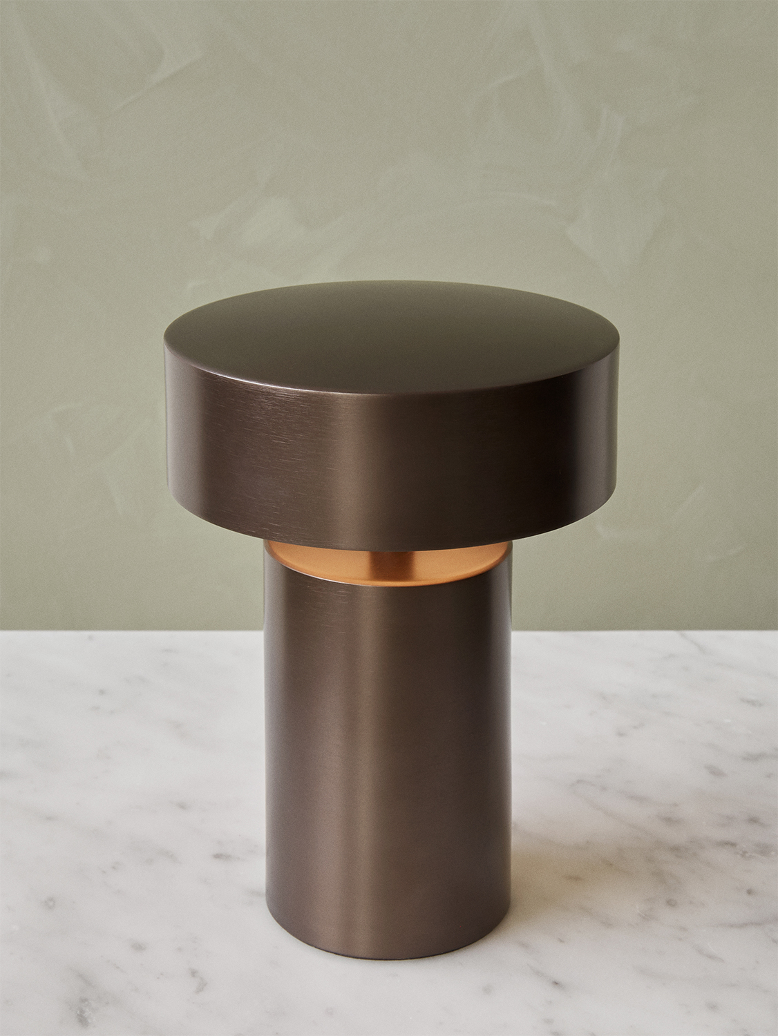 The column table lamp’s warm, comfortable light makes any space more inviting, and fits into every décor, from the classic to the ultra-minimalist. The indoor table lamp is constructed from anodized aluminum. It is cordless and rechargeable via a usb charger. The led lightbulb produces soft, diffused, comfortable light with three settings. Thedesign is available in a bronze finish