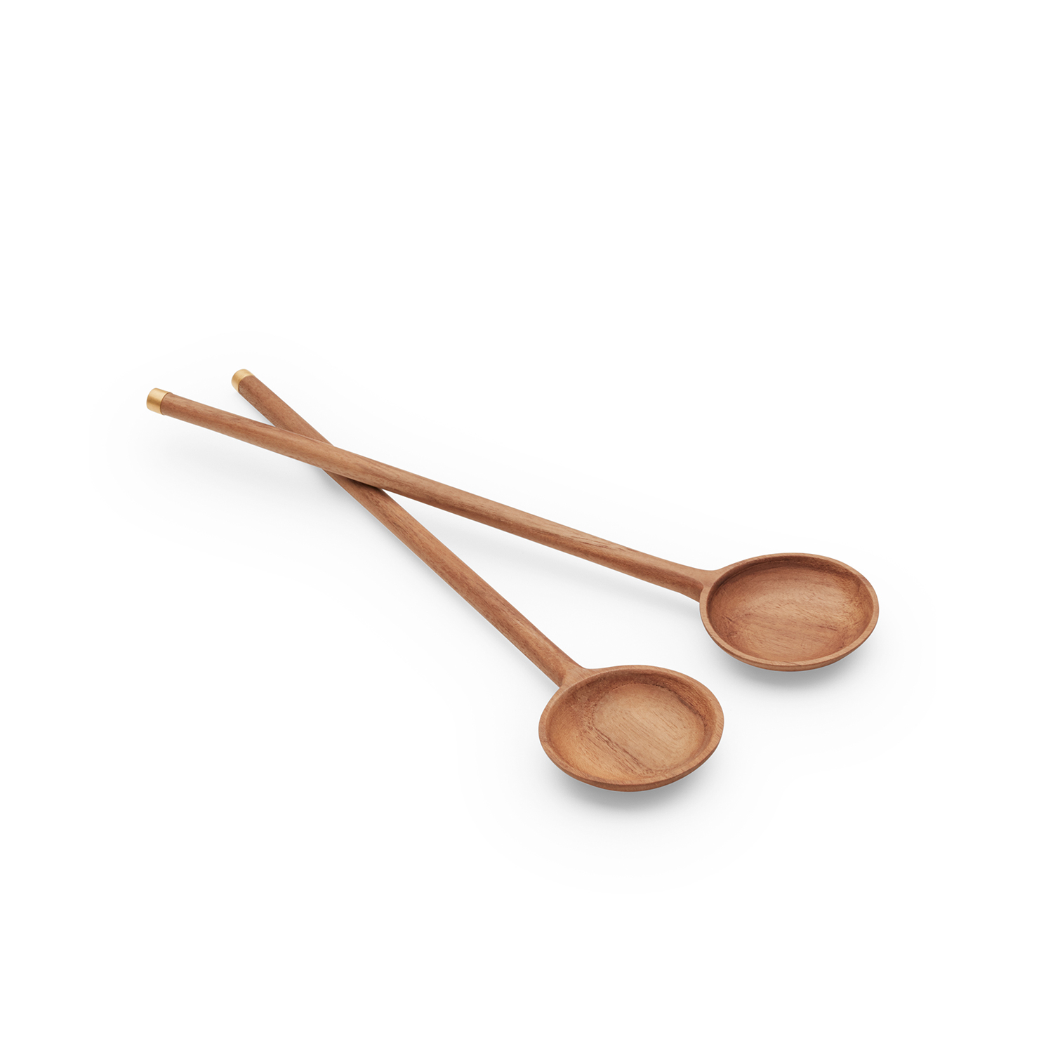 Edge salad servers are made from strong and honey-brown teak and is treated with a food-safe oil to improve its durability. The salad servers are rounded off with a neat brass tip that compliments the wood well.