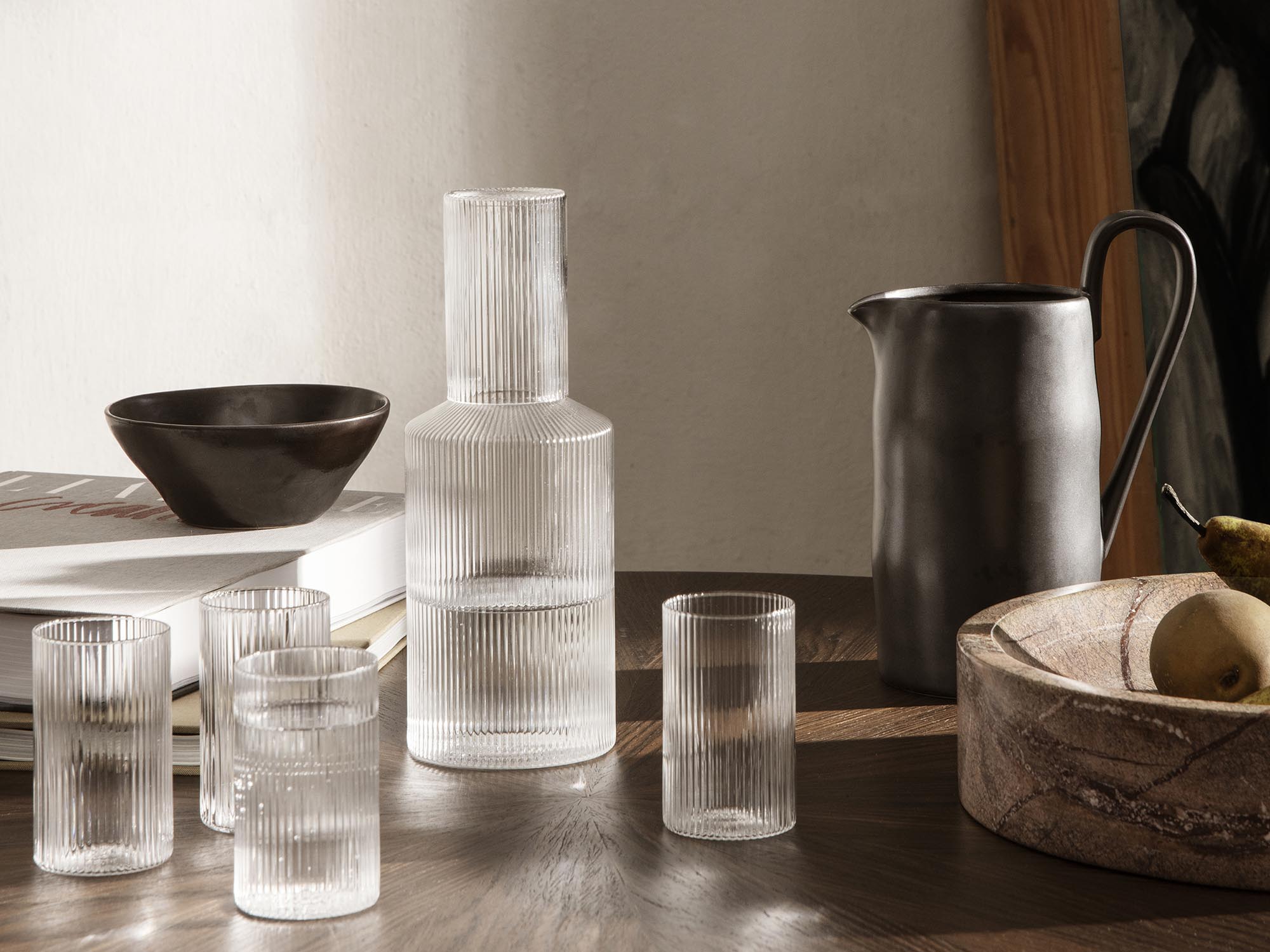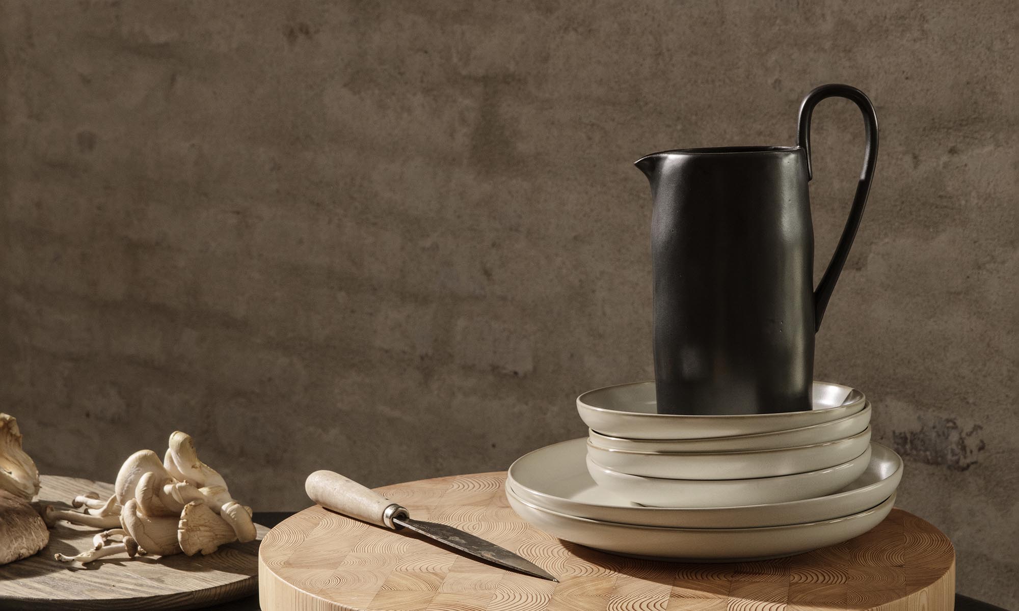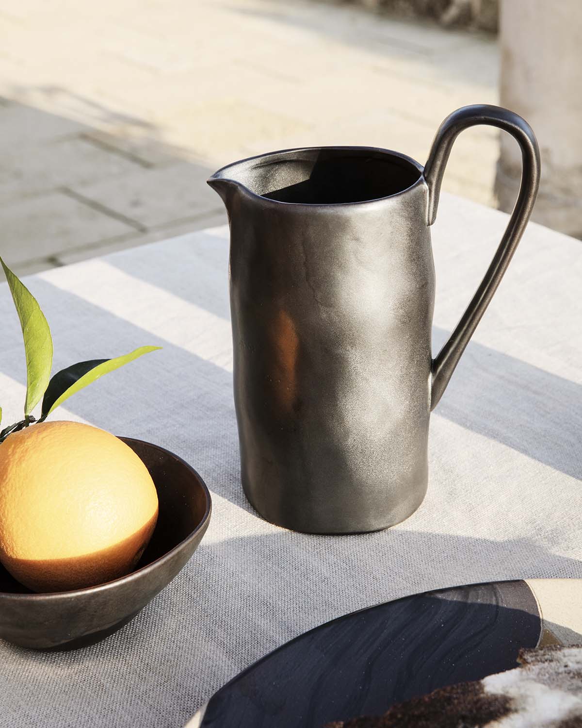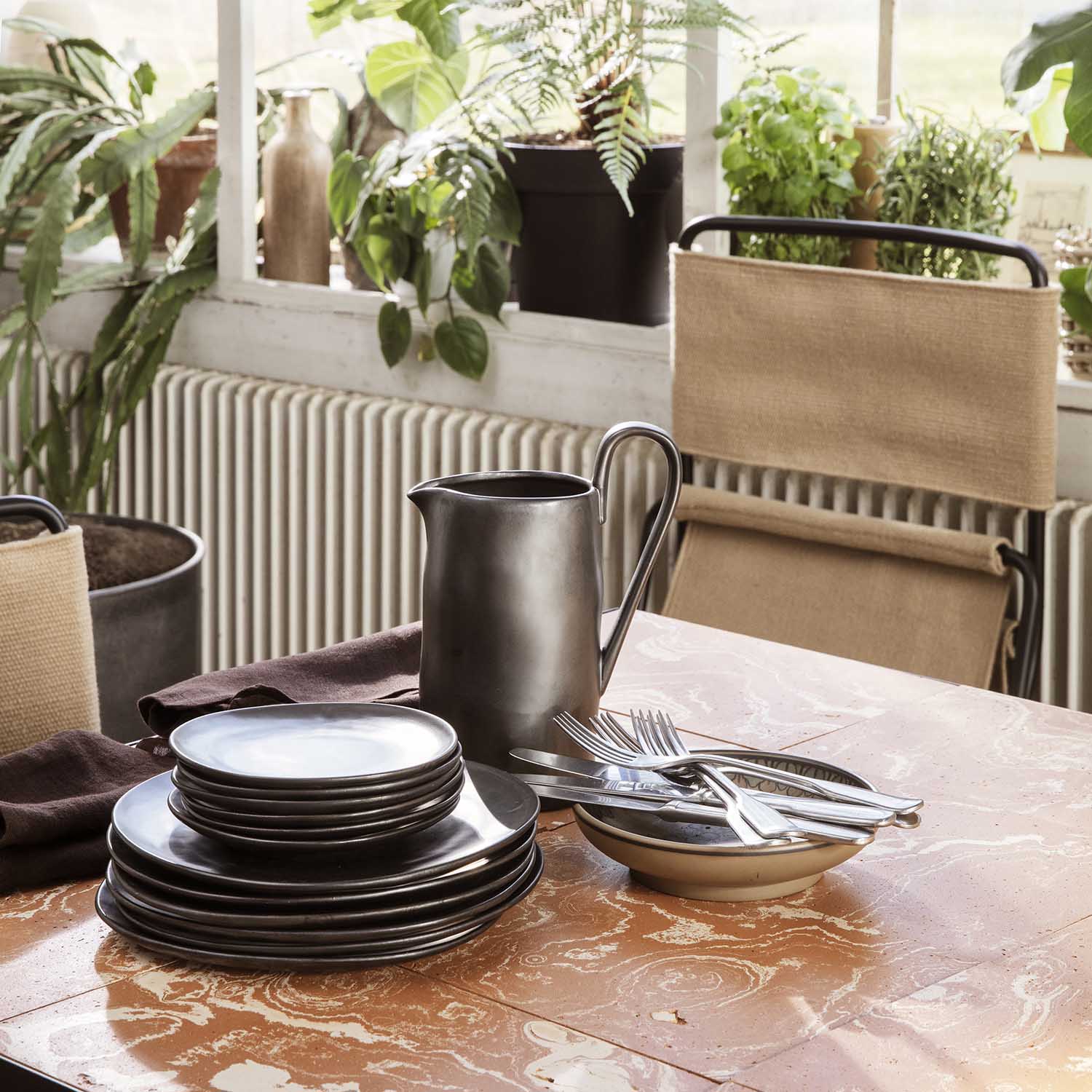 Flow is a series of perfectly imperfect tableware made to modern sensibilities using traditional craftsmanship techniques. All the items are detailed with a semi-matte glaze for a unique expression. The simple, clean lines of the jug are offset with a distinctive elongated handle that makes a strong style statement on any table setting.