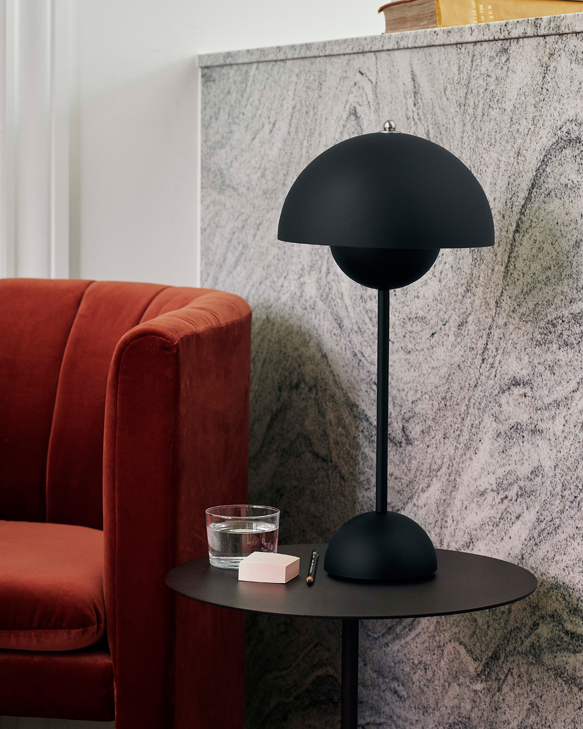 In 1968 the students’ revolts in Paris, Rome and the United States were overthrowing stiff, old values, and initiating the Flower-Power generation of peace, love and harmony. Same year, Stanley Kubrick pictured the future of the year 2001, featuring the Verner Panton Chair, and man was soon to set foot on the moon. In the world of design, a colourful, playful pendant hung in restaurants and exhibitions, and very soon, in everybody’s homes. The FlowerPot with its two semicircular spheres facing each other has long proved its lasting design quality and is just as much a synonym of our time, too. & In his young days, Panton often set off from Copenhagen in an odd looking converted Volkswagen for a trek across Europe, dropping in on fellow designers to share ideas – and good meals.