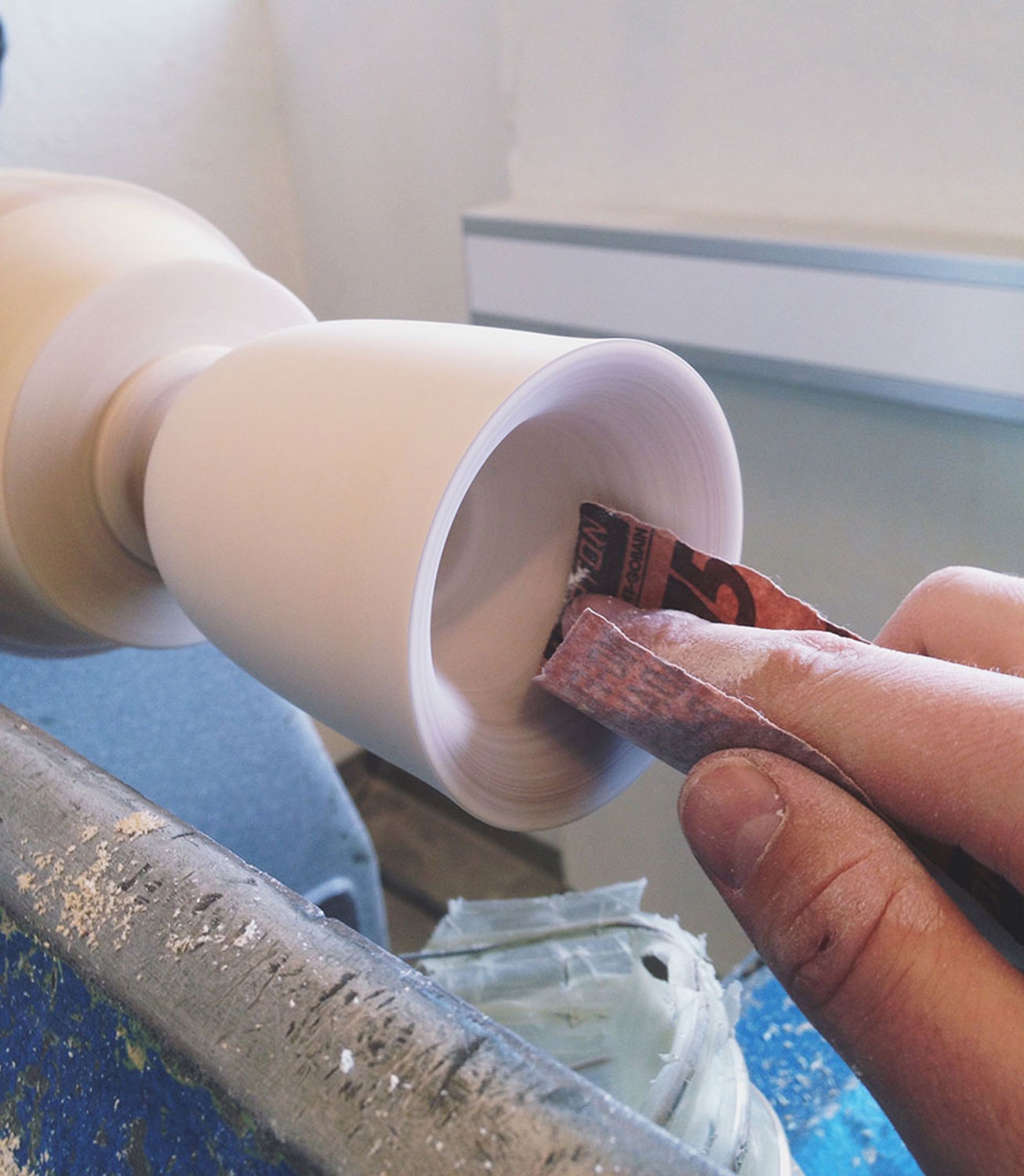 Turned ash wood & rubber cord. LED bulb included