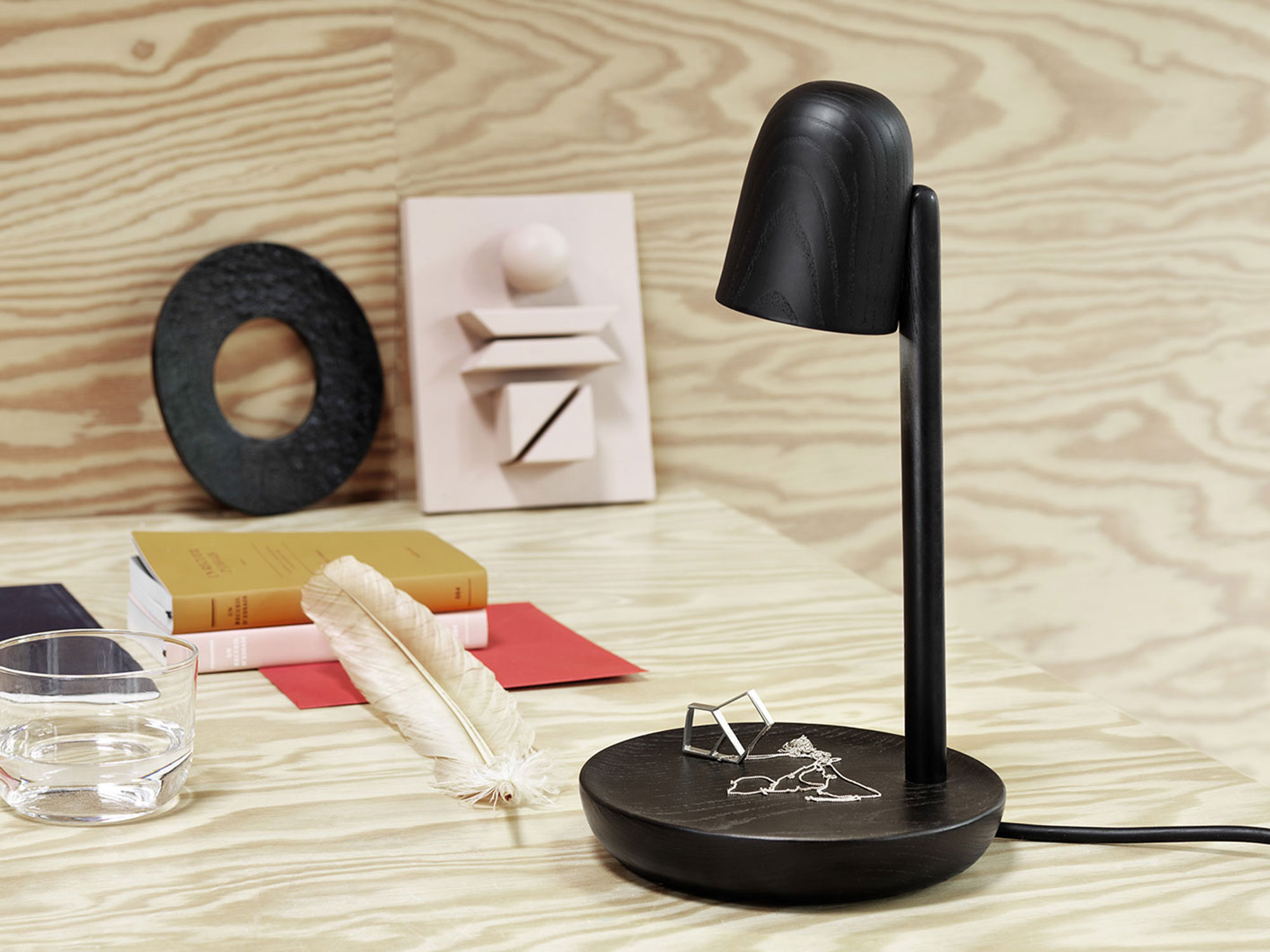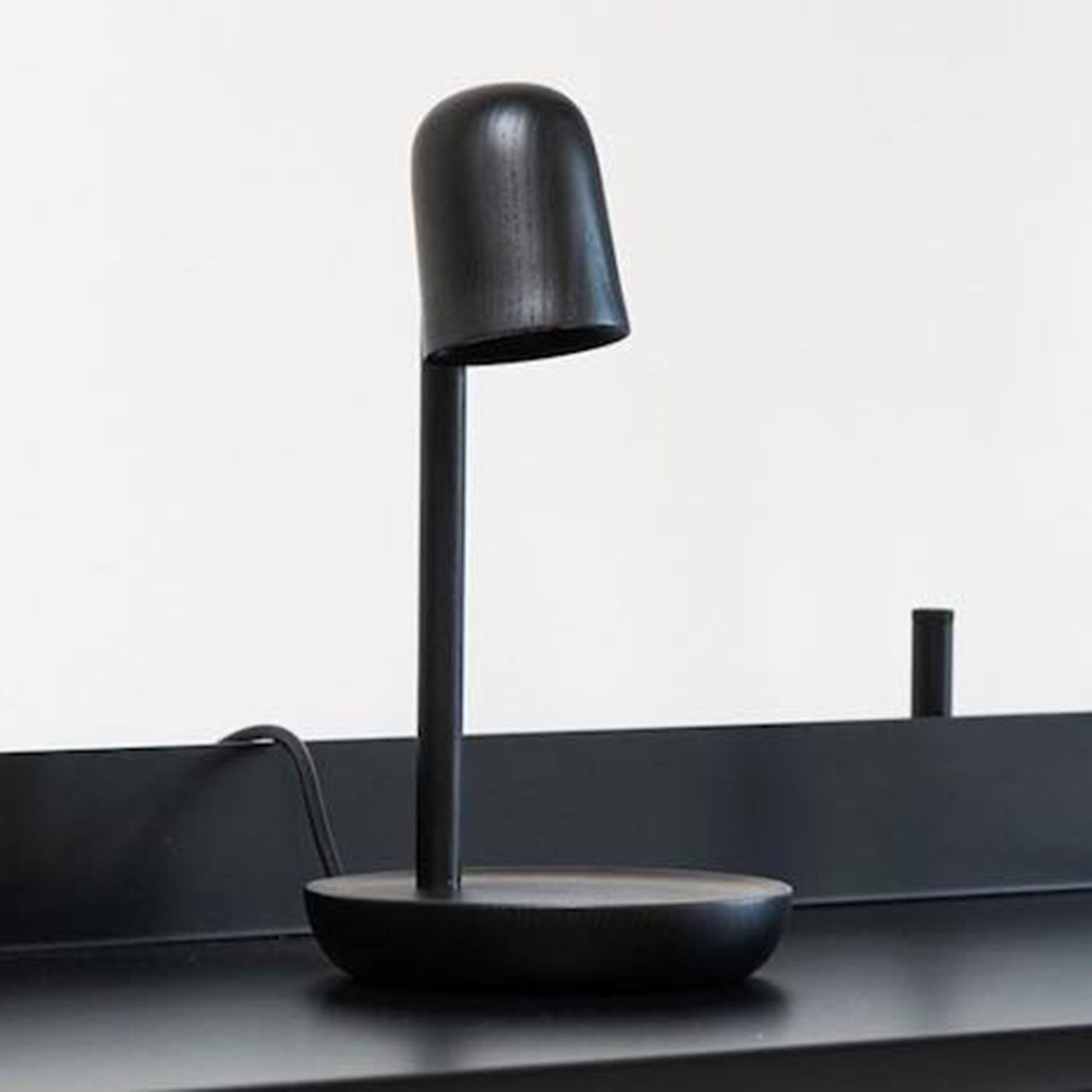 Scandinavian in its expression, the Focus Table Lamp highlights its ash wood body with black paint that allows for the texture of the wood to shine through. With a protruding base that is perfect for small items, the lamp fits seamlessly on a windowsill or shelf in need a bit of light.