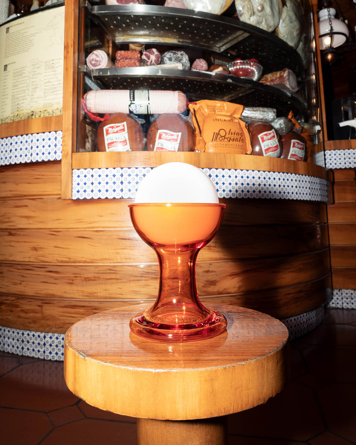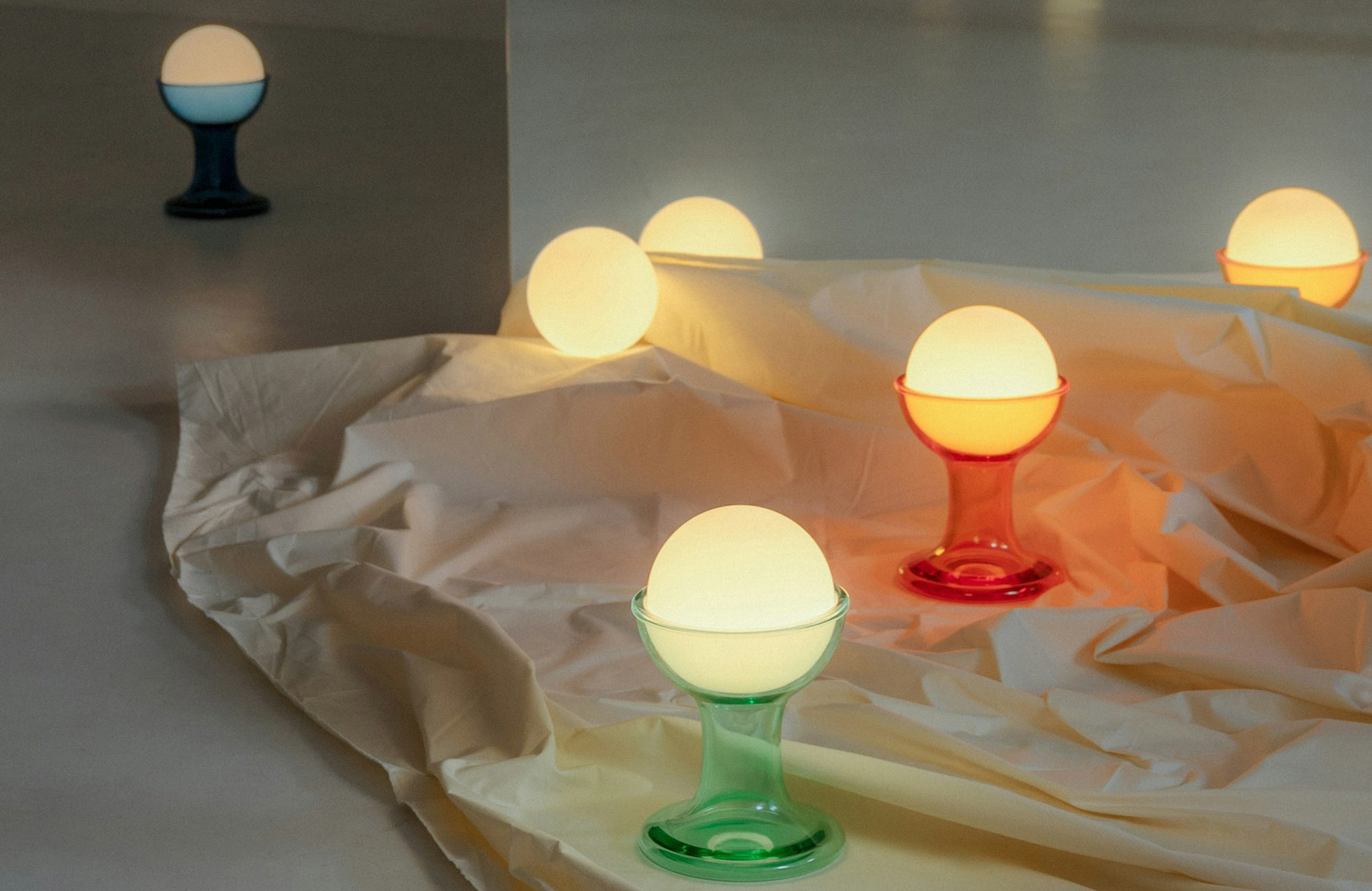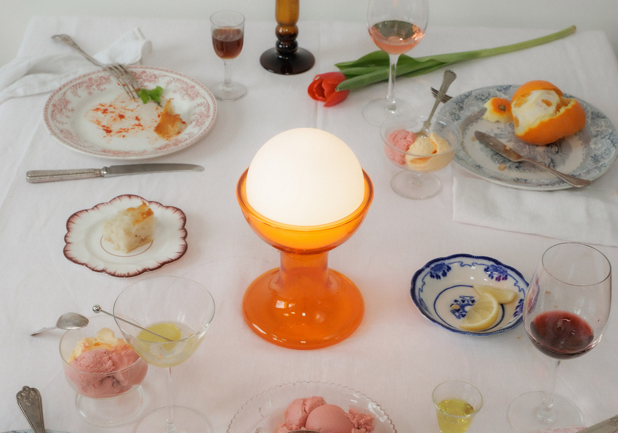 Gelato, eponymously named for its resemblance to the quintessential Italian symbol, features a colourful glass vase, or cup, that nestles an orb of frosted glass. The freestanding orb hosts a custom-made, replaceable LED bulb with an integrated battery, and is activated with a haptic three-step dimmer. The portable glass lamp is charged directly on the orb, using a USB-C magnetic charging cable now universal to Established & Sons’ collection of portable luminaires.