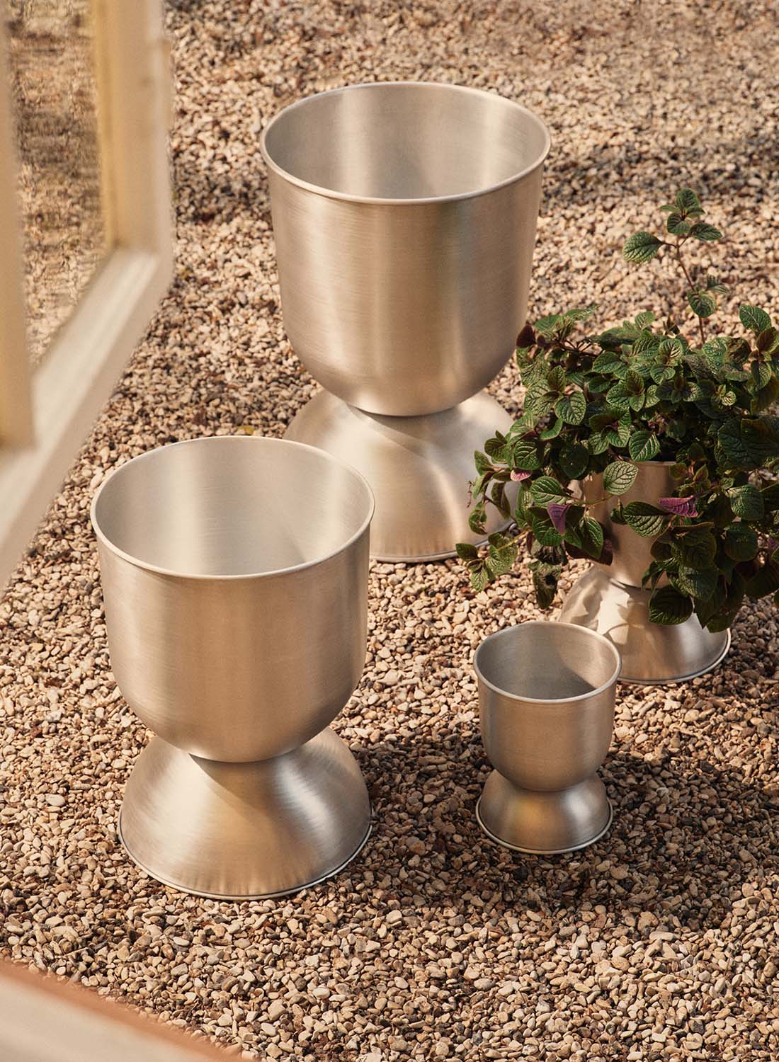 The Hourglass Pot offers your plants both an elevated stand and a spacious vessel for their roots. Designed to be used in either direction, it adapts to the needs of your plant while maintaining its distinctive, sculptural silhouette. Crafted from brushed aluminium and treated for outdoor use, it combines functionality with timeless form.