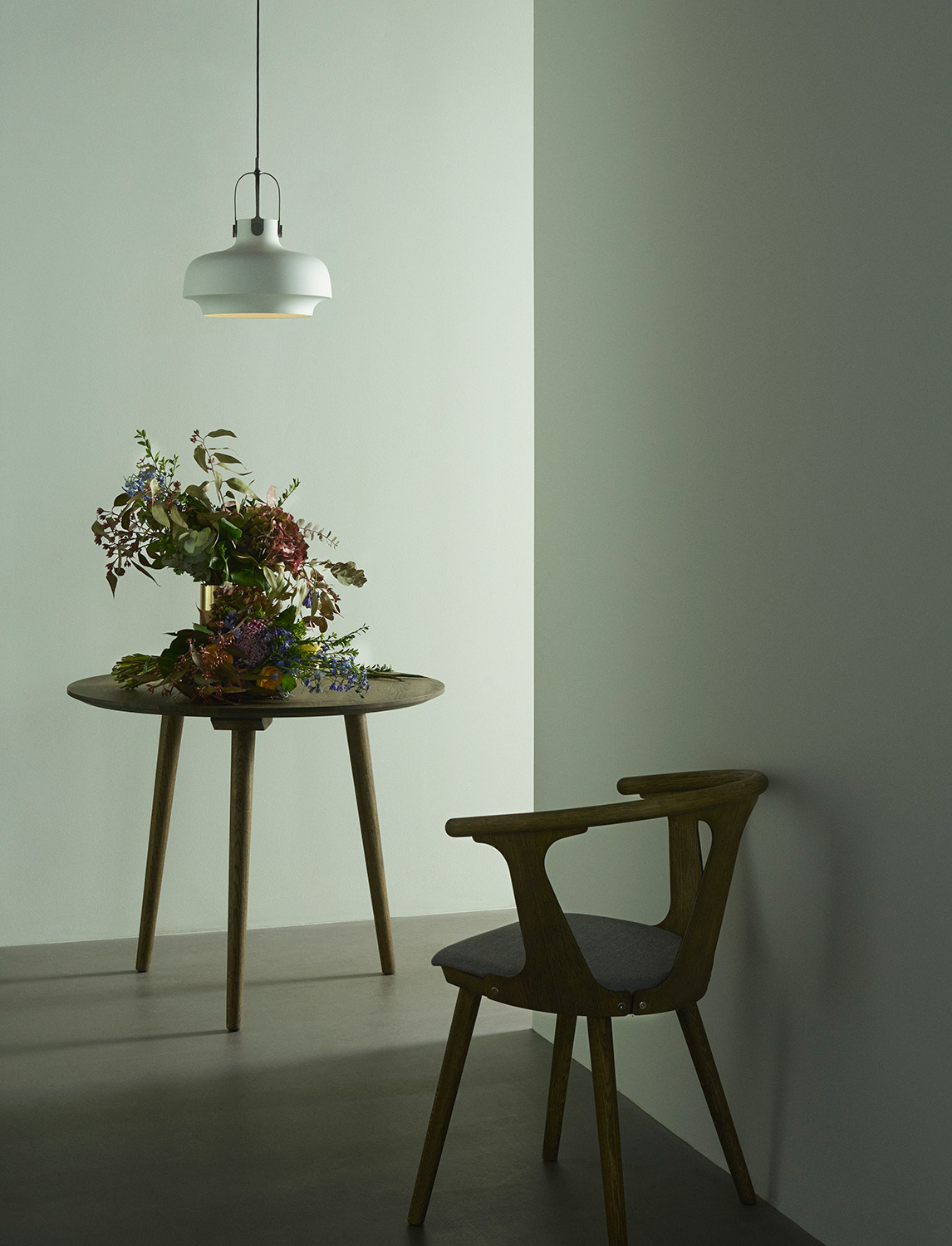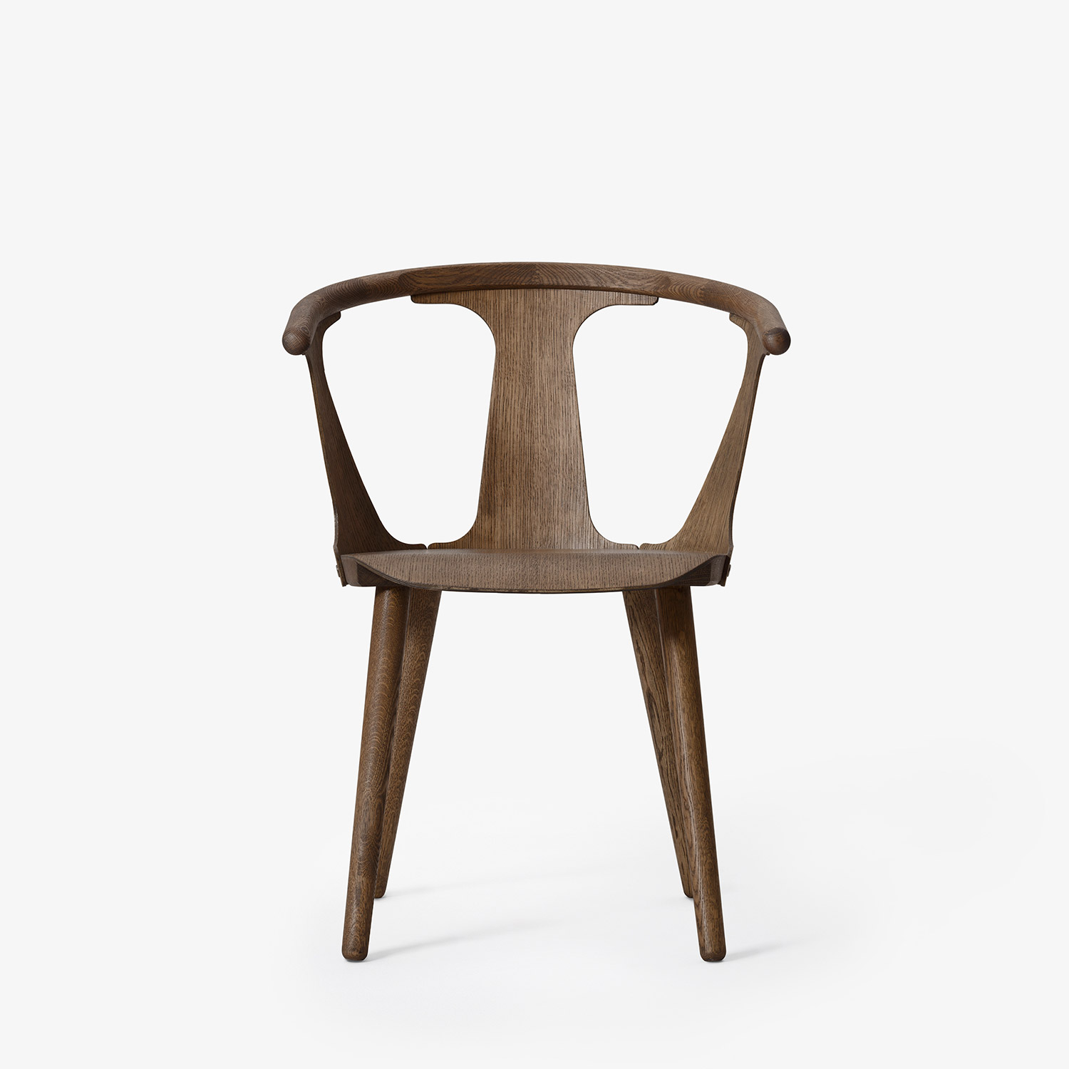 The interplay between positive and negative space is central to in Between, Sami Kallio’s chair design for &tradition. Its back and side panels provide a concrete shape and support, but forms are created equally by the gaps in between them. Kallio’s expertise in traditional woodworking craftsmanship is evident in the chair. In Between is produced using two classical techniques; compression molding (making it light and thin, yet strong) and woodturning (a technique that uses a lathe to achieve greater detail).