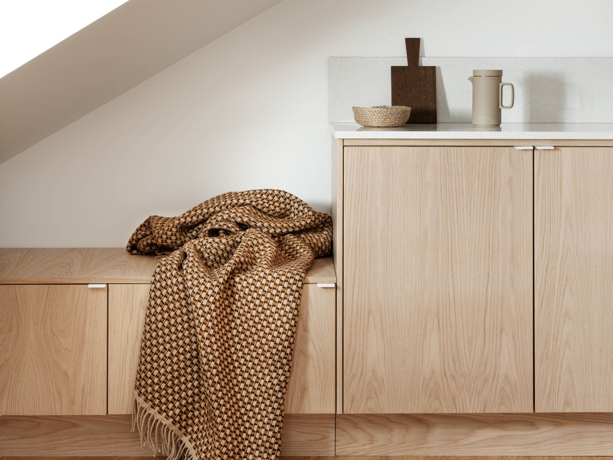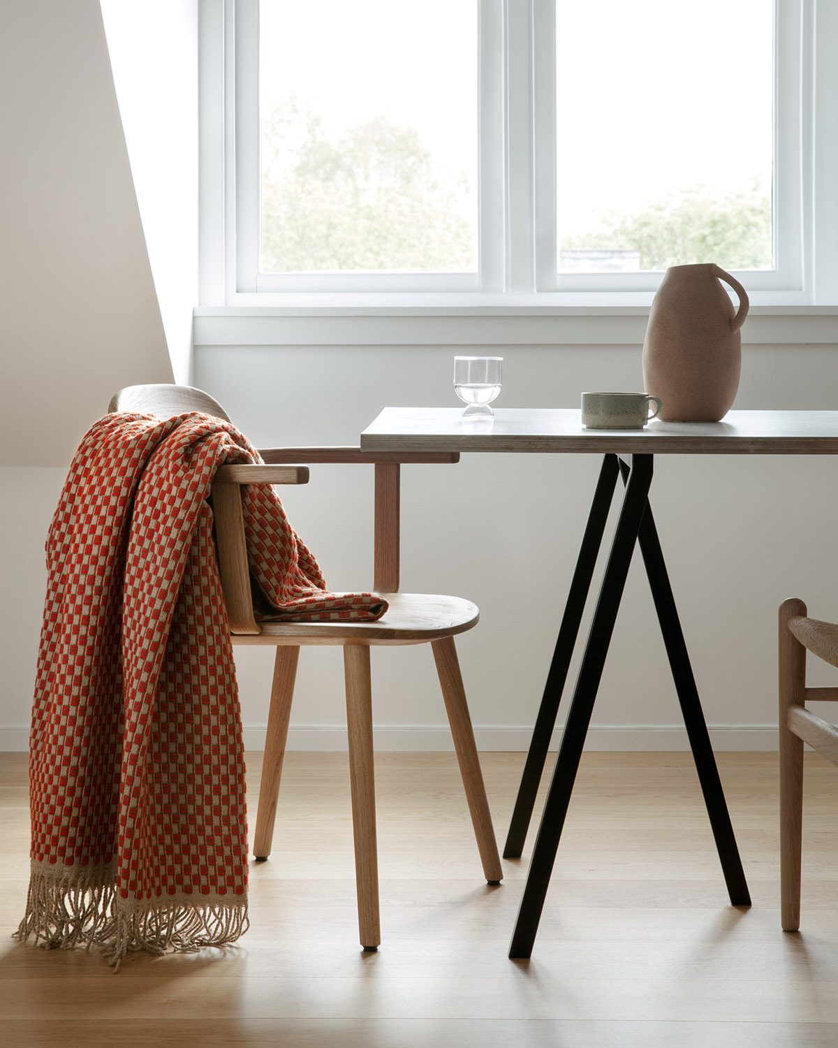 In 2016, we were part of an international design research project called ‘Furnishing Utopia’. The initial stage was organized as a workshop at the Hancock Shaker Village in Massachusetts, USA. The ISAK throw was first sketched out during this visit. The classic Shaker chairs are often braided from colorful, woven cotton tape. The ISAK throw is inspired by this, but translated into a light, soft and decorative throw.