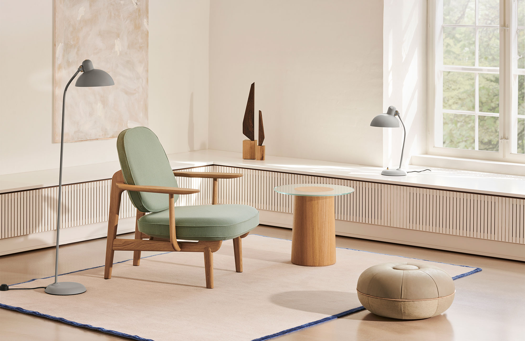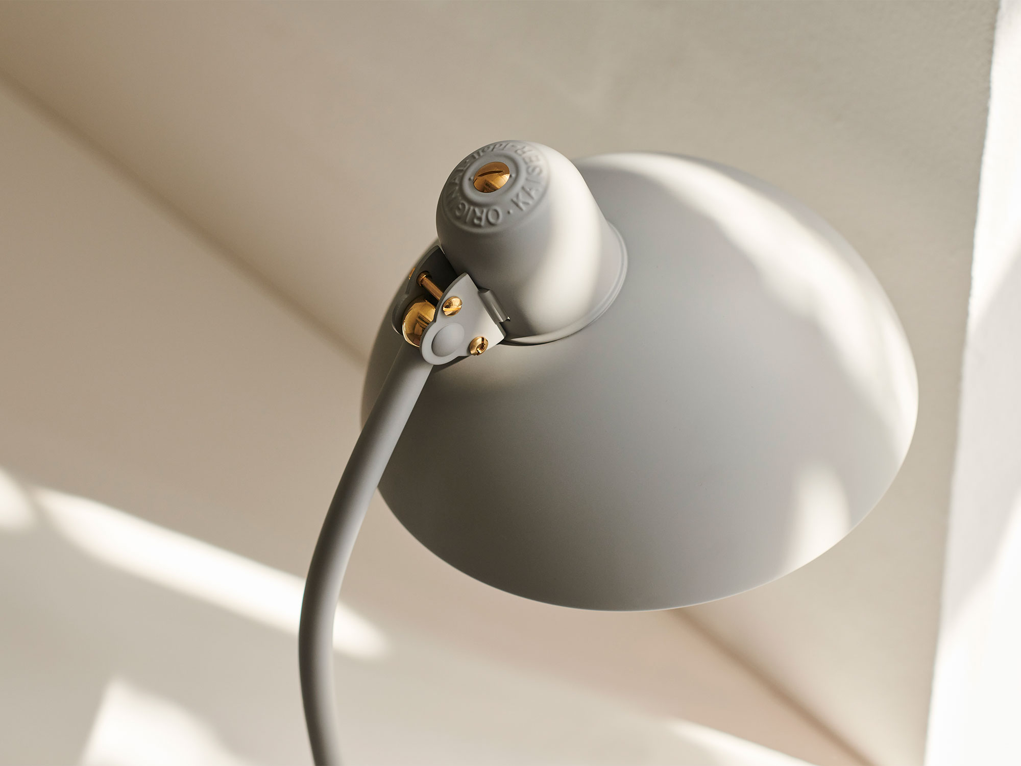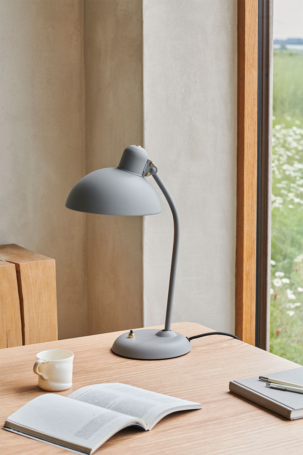 The renowned KAISER idell lamp is characterised by Christian Dell’s ability to create elegant design with basic geometric hallmarks of modernism: shapes like the sphere, circle and cylinder. Today, the KAISER idell is widely recognised as a symbol of noble Bauhaus design, exquisite choice of material, and precise engineering. With its asymmetrical shade and tiltable arm, the 6556-T table lamp is typical of Dell’s graceful, uncluttered style, bringing directable lighting to the workdesk.