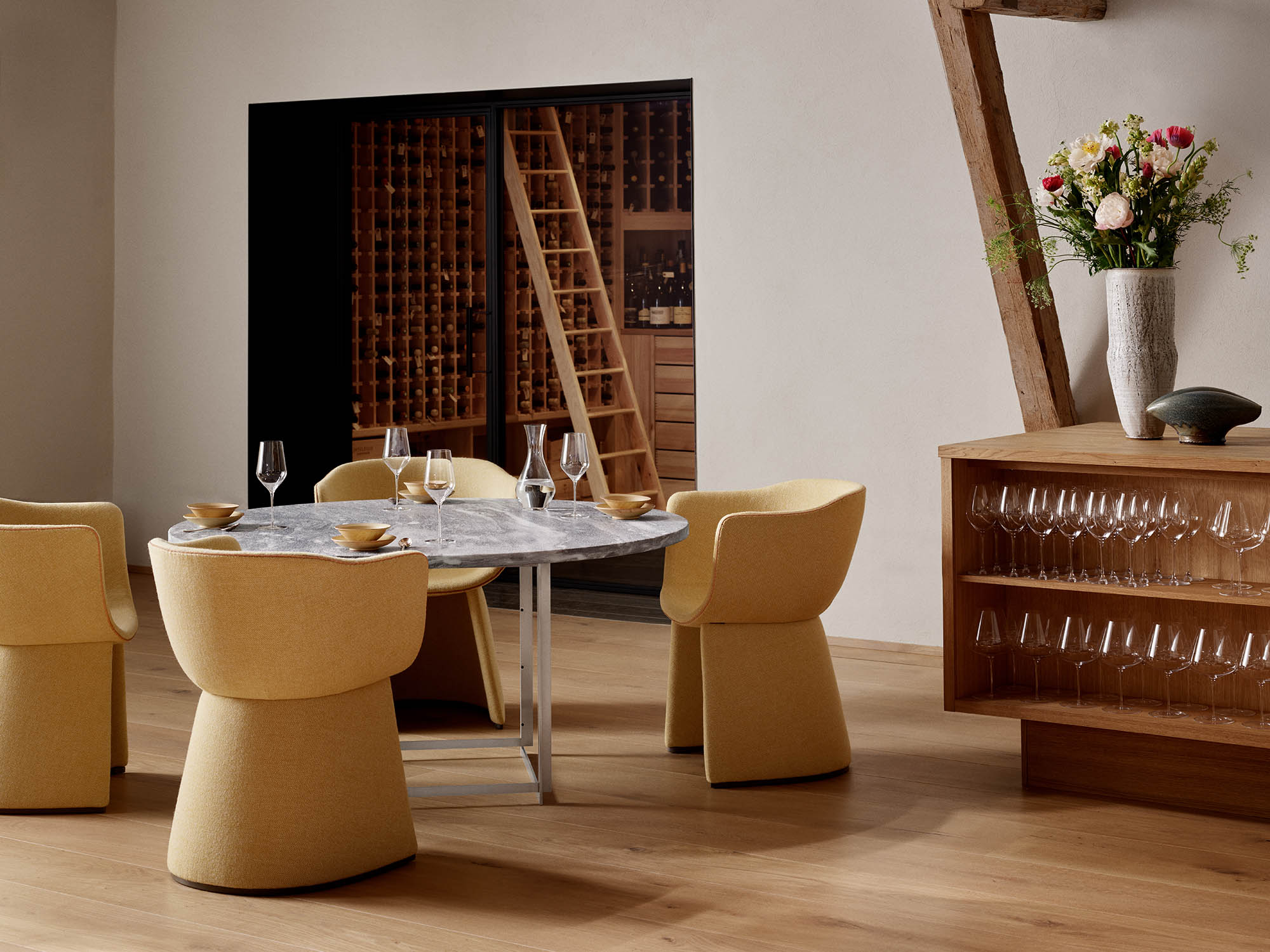 Monolit™ dining and lounge chairs elevate intimate, long dining occasions and provide a relaxing seat in contemporary lounge areas. The chair’s distinct shape stands out while gently cocooning the sitter and provides a private space for personal items underneath. Customise with bespoke colours in one or two textiles. Distinctly contemporary and graciously restful, the Monolit dining chair’s slender silhouette uplifts memorable occasions with understated sophistication.