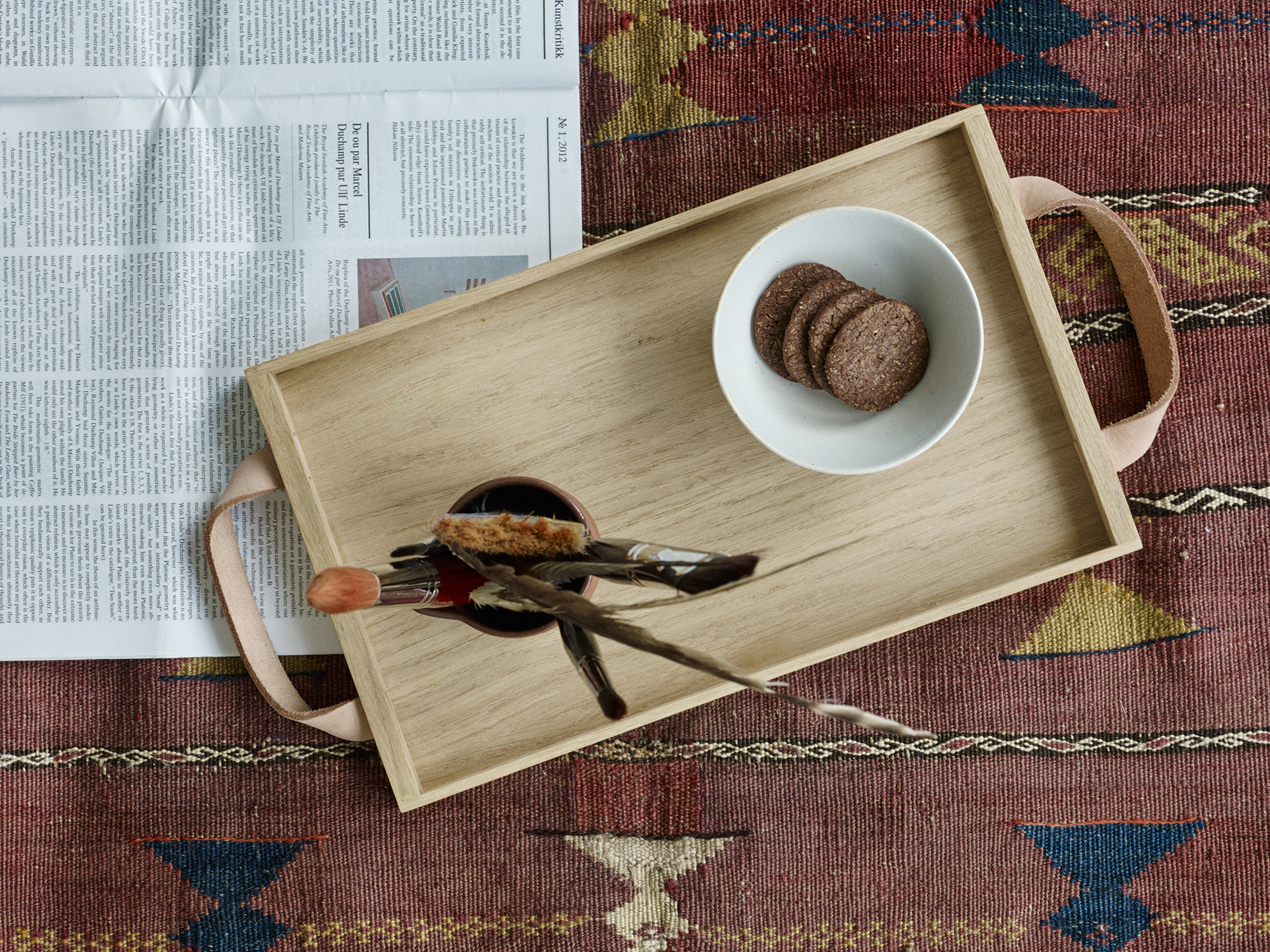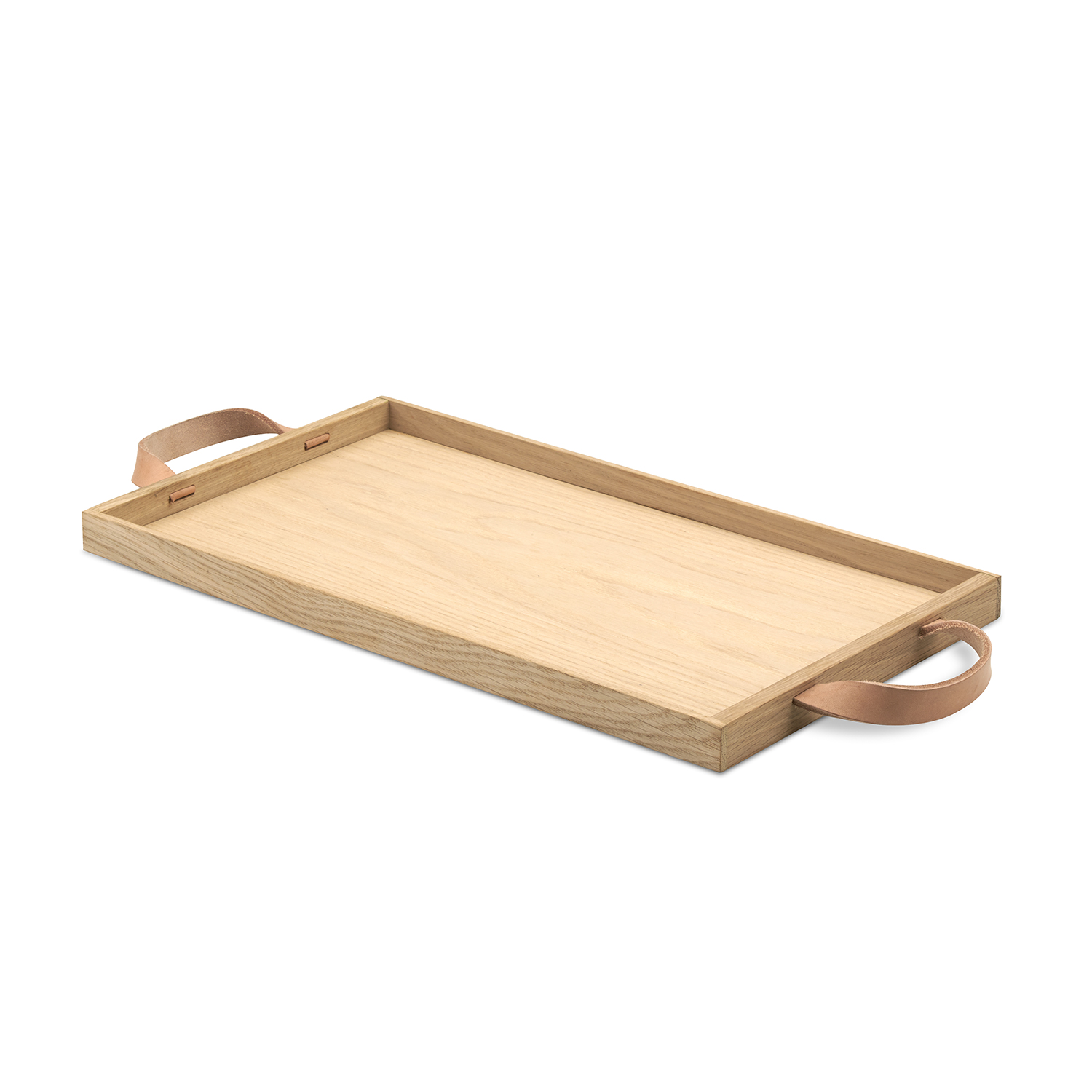 Norr Tray is made in natural materials with a visible and living structure. The simple, rectangular form and the tactile leather grip makes it easy to carry – perfect for servings in bed, on the balcony or around the fireplace. Over the years, the oak and leather will patinate beautifully.