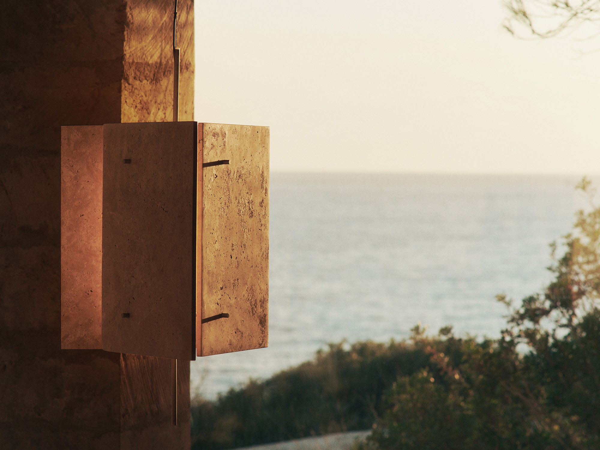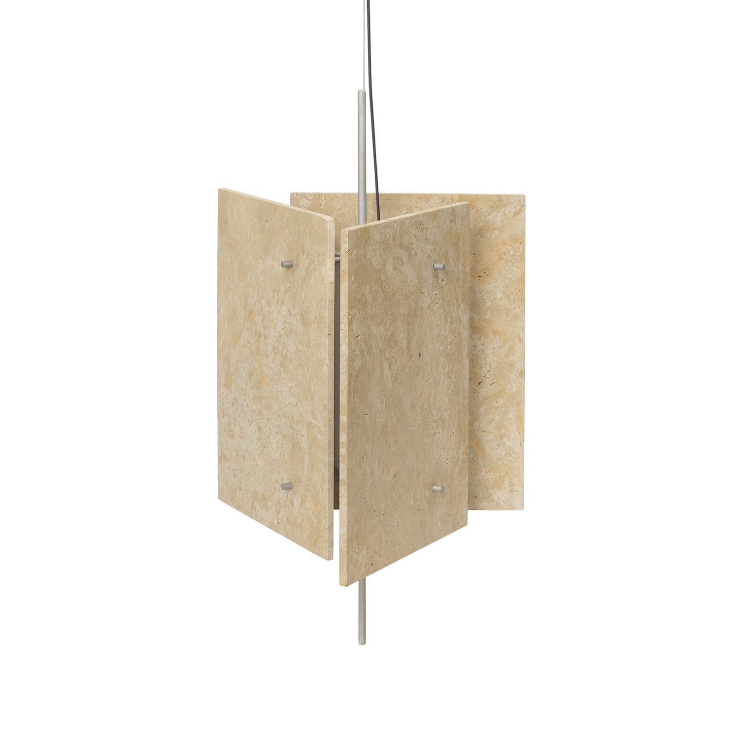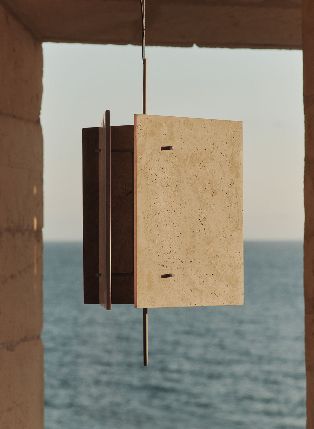 The Ferm Living x Utzon – Can Lis collaboration draws inspiration from architect Jørn Utzon’s family home in Mallorca, merging the natural environment with design elements that reflect his unique philosophy. The Oeste Pendant Lamp features three panels of travertine surrounding a central light source, creating a dynamic play of light and shadow. The natural texture of the stone enhances the warm, diffused light, casting a soft, architectural glow. Flat-packed for easy assembly, this design blends materiality with function and offers an atmospheric lighting solution for any space.