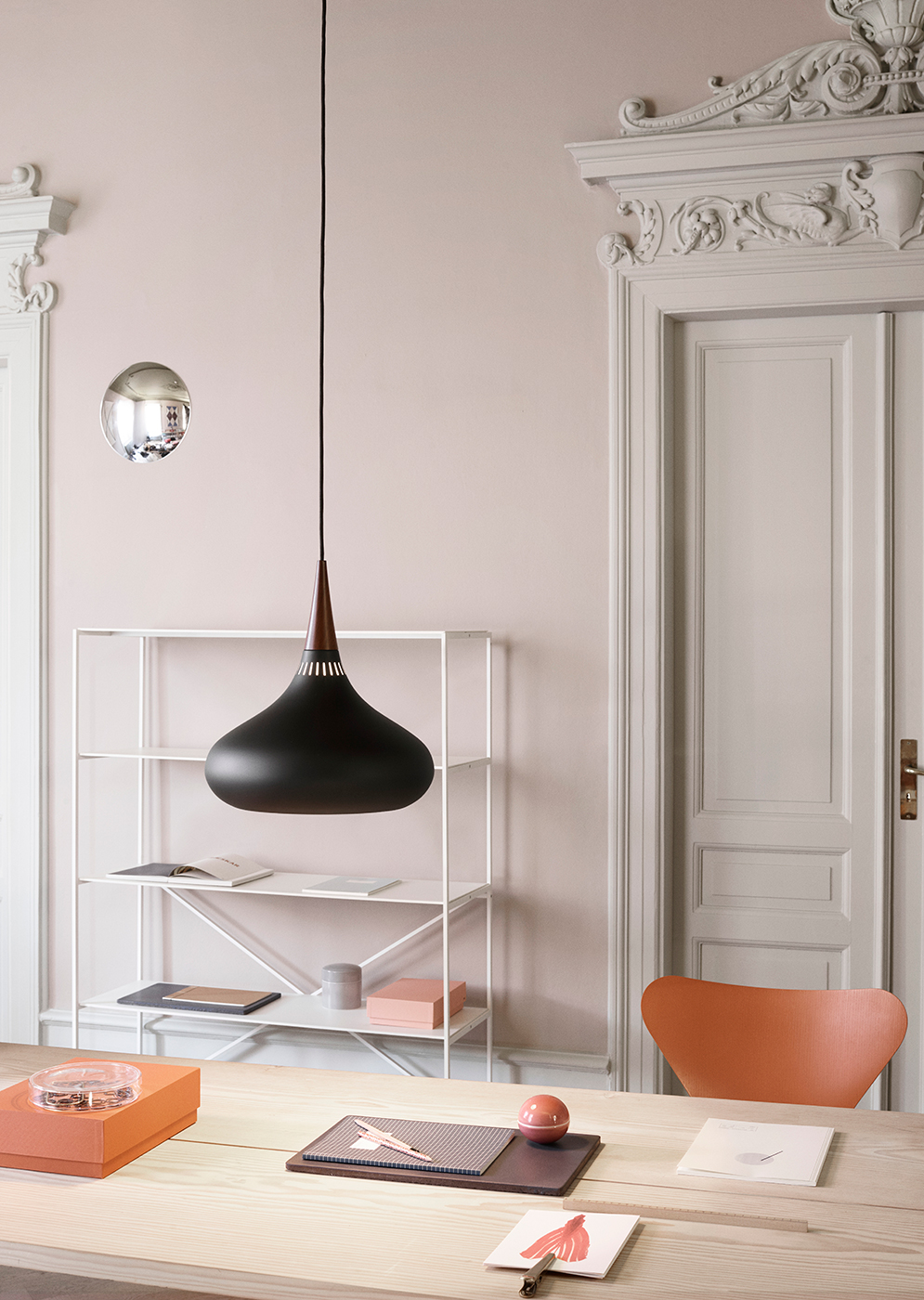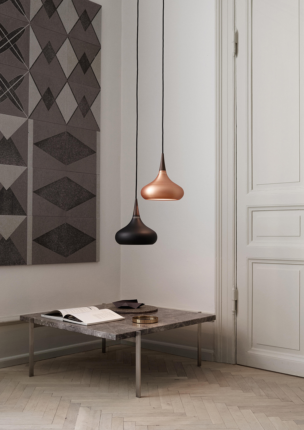 The Orient™ pendant is a flawless light design with great luminous efficacy and made from the finest quality materials. The pendant was created by Jo Hammerborg in 1963 and relaunched by Fritz Hansen Lighting in 2013. The fitting elegantly conceals the low energy light source and ensures a soft, pleasant light without any glare. The Orient lamp shade is hand spun in a wooden mould, a feature that underlines the original, organic shape and true craftsmanship of this pendant.