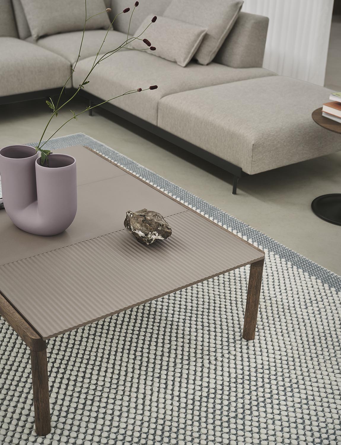 Pebble Rug has a diverse and tactile surface, inspired by the sensuous feeling of walking across a pebbled beach. With a handwoven structure, Pebble Rug contrasts the materials of its soft, woolen loops with its sturdy canvas base in a cooling jute yarn. Pebble Rug has a distinct and modern woven texture for any home, hospitality setting, lobby, hotel space or co-working area.