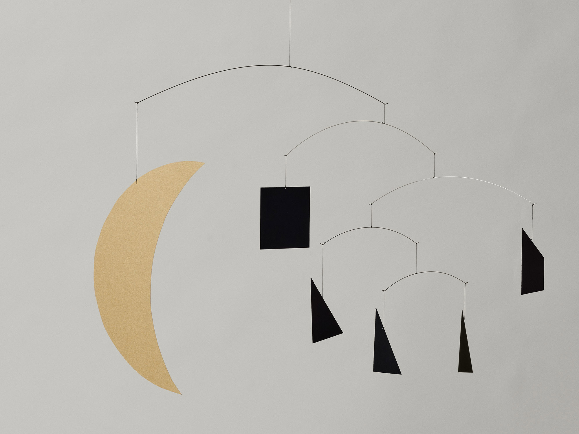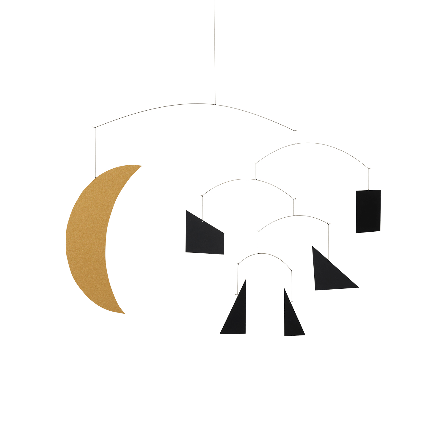 The Ferm Living x Utzon – Can Lis collaboration draws inspiration from architect Jørn Utzon’s family home in Mallorca, merging the natural environment with design elements that reflect his unique philosophy. The Phase Mobile is crafted in Denmark from high-quality paper and draws inspiration from Utzon’s iconic moon graphics at Can Lis. Featuring a progression from slim triangles to wide triangles, culminating in a square and crowned by a golden ‘moon,’ it creates a poetic balance between geometry and motion. Suspended on delicate strings and wire, the elements move softly in the breeze, generating ever-changing compositions that are both meditative and dynamic.