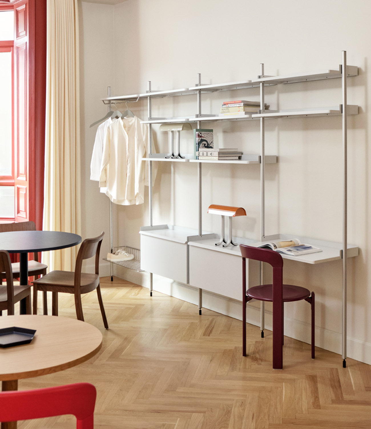 Designed by French designers Ronan & Erwan Bouroullec, Pier System is a multifunctional storage system developed to accommodate and adapt to modern lifestyle requirements. Featuring a flat-pack design that is easy to assemble, reconfigure and recycle, the simple construction provides a flexible shelving solution for organising and storing a multitude of items. Constructed from lightweight aluminium and steel using the minimum number of components required to create a complete storage system, Pier System is available in a variety of colours and set configurations that can be combined with each other. Elements that are part of these configurations can be moved around as needed and desired, enabling the user to incorporate work, wardrobe or organisational functions into most rooms and environments, from living rooms and bedrooms to entrance halls and office areas.