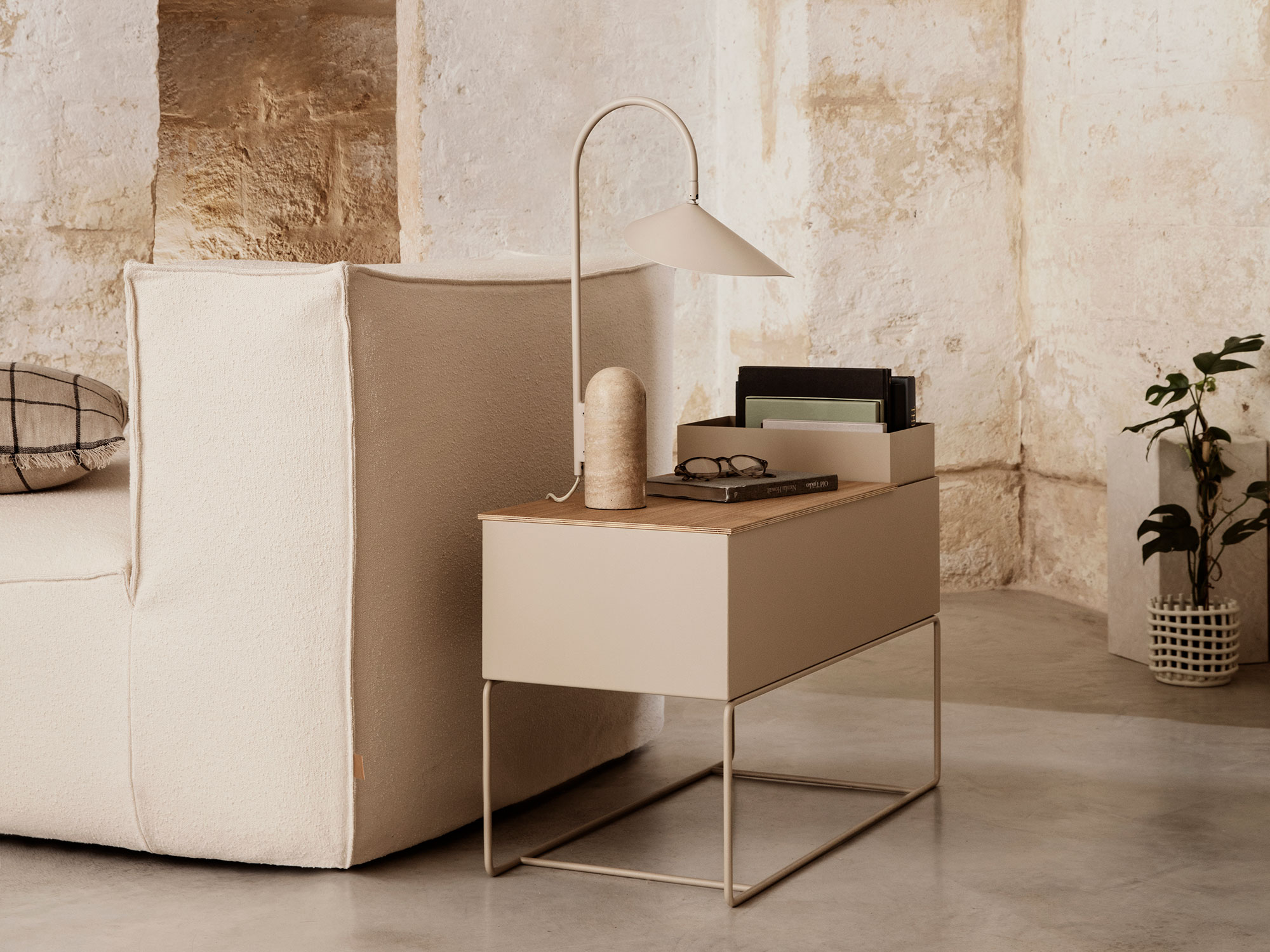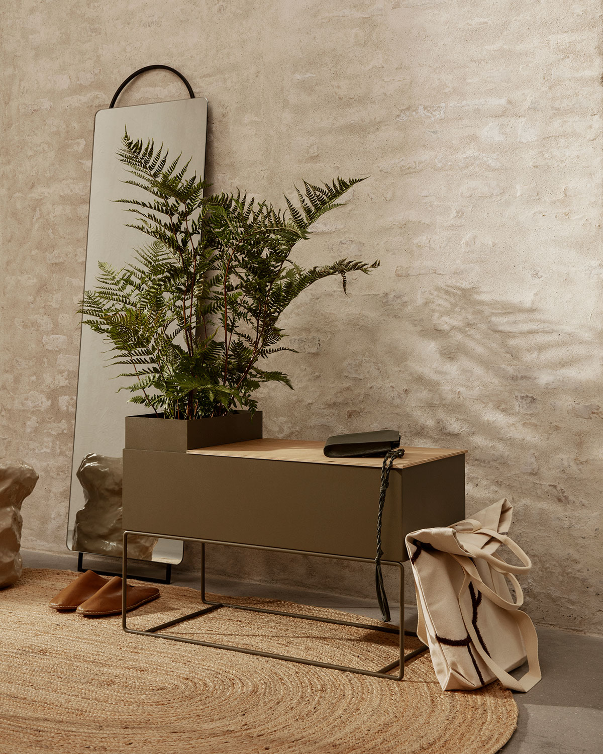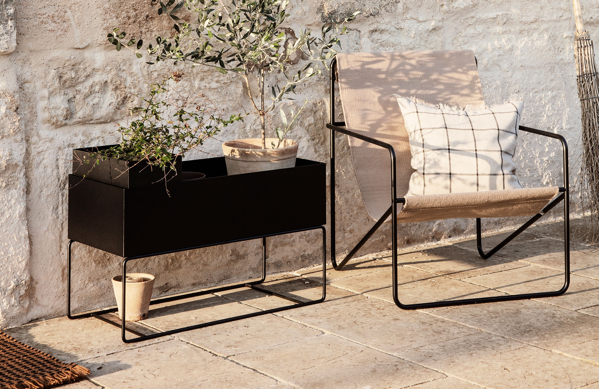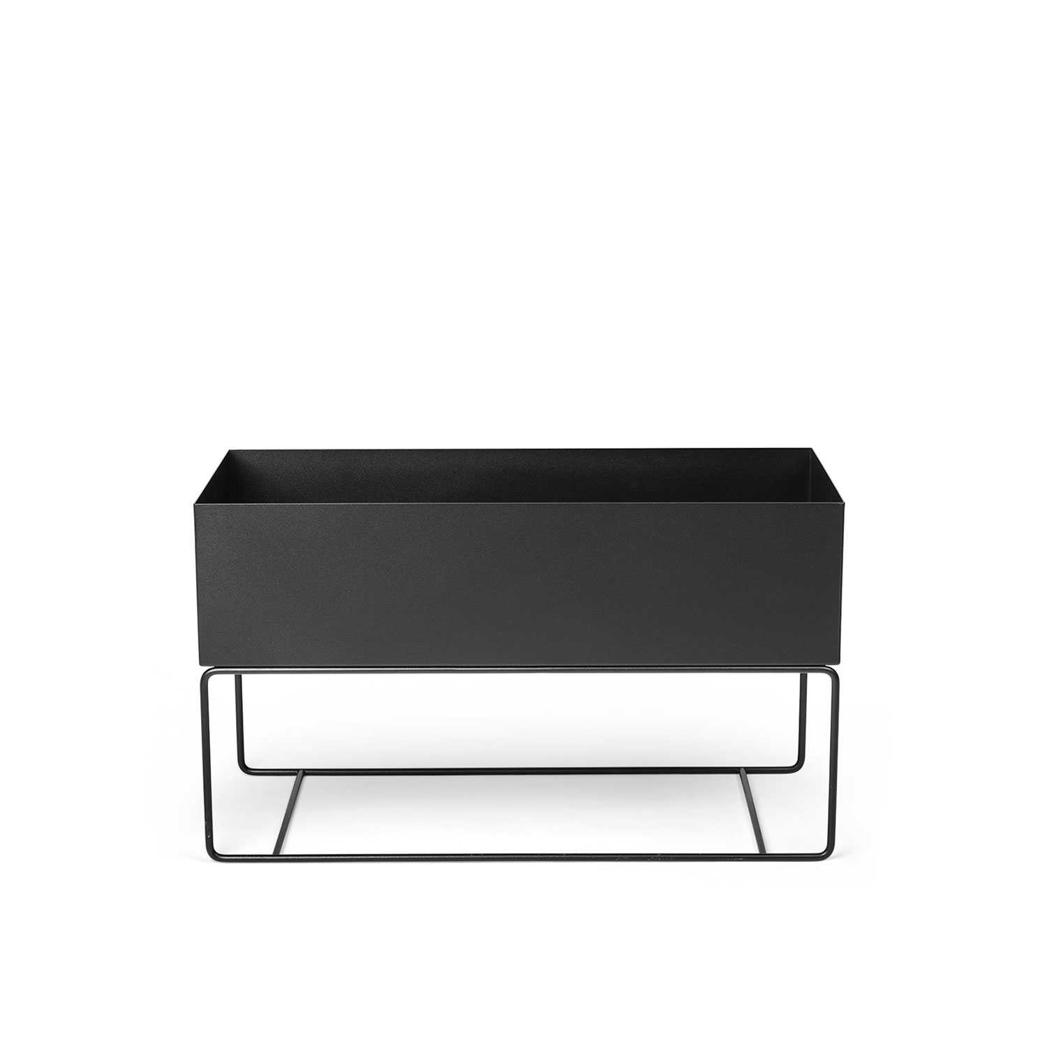 Large, low and deep, this Plant Box container in powder-coated metal is equally suited to housing plants as it is storing everyday clutter – from magazines and books to toys and office supplies. Set on a slender yet sturdy frame, the timeless design in go-with-anything black can also be used with the corresponding lid to create a seat in a hallway or extra surface space.