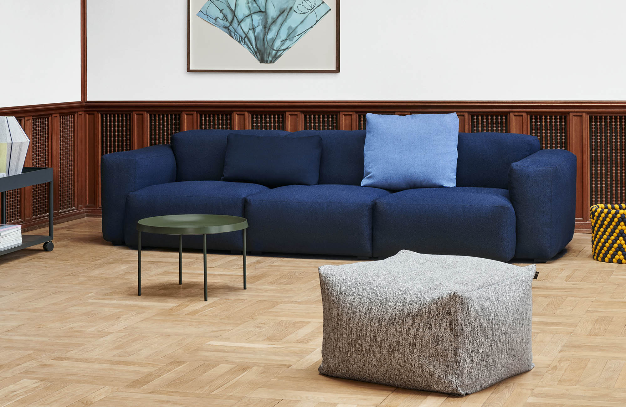 Designed to work equally well as a footstool or extra seat, the multifunctional Pouf can be used with matching HAY furniture or independently. Lightweight and easy to move around, it is ideal for using in living rooms, children’s rooms, and hallway. Available in a number of different upholstery and colour options.