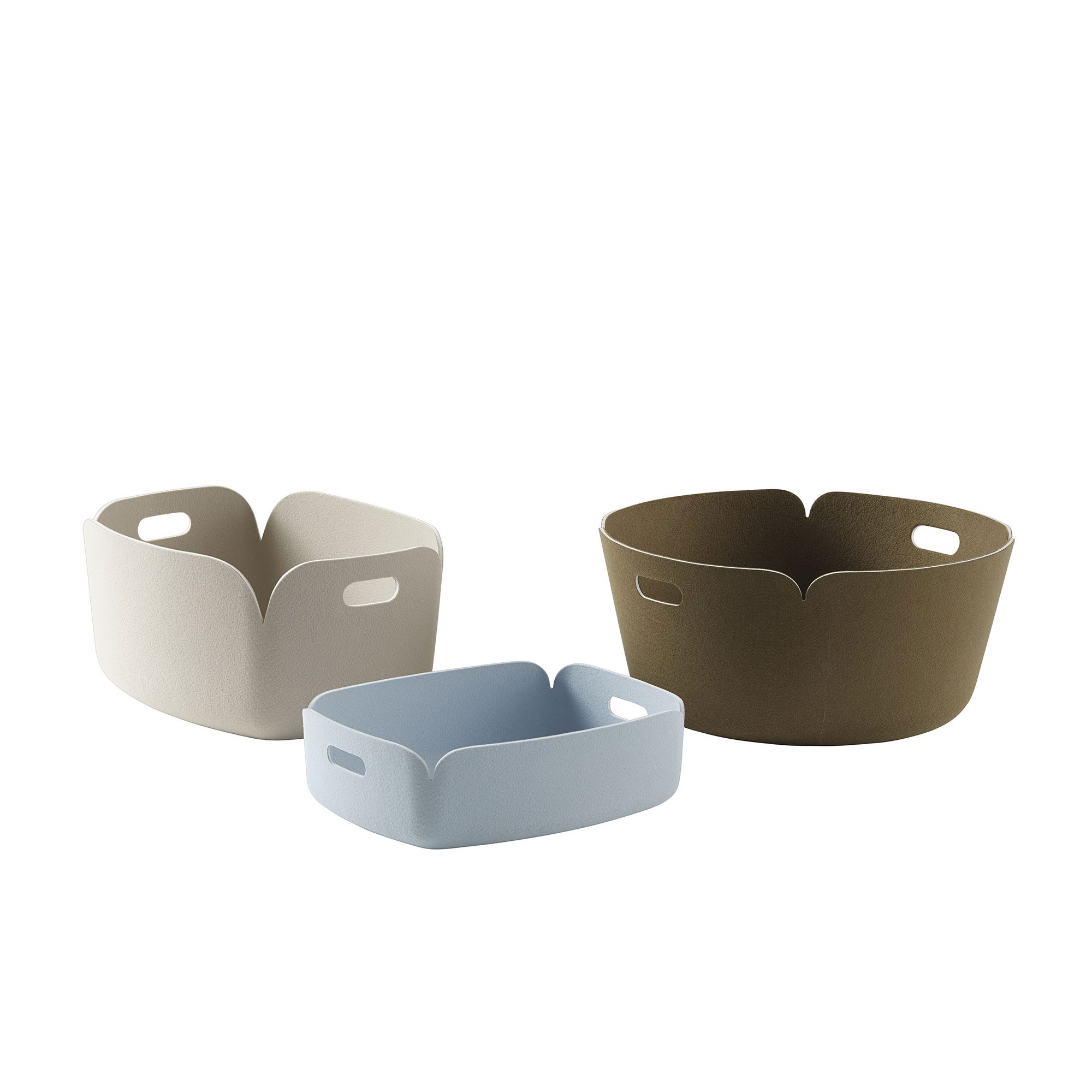 Made from a felt made of recycled plastic bottle fibers, the Restore Round Basket is a functional and versatile storage unit that can be used for almost any object from laundry to blankets to children’s toys. The round basket comes in a variety of colors and offers a textural, quirky addition to any home or professional space.