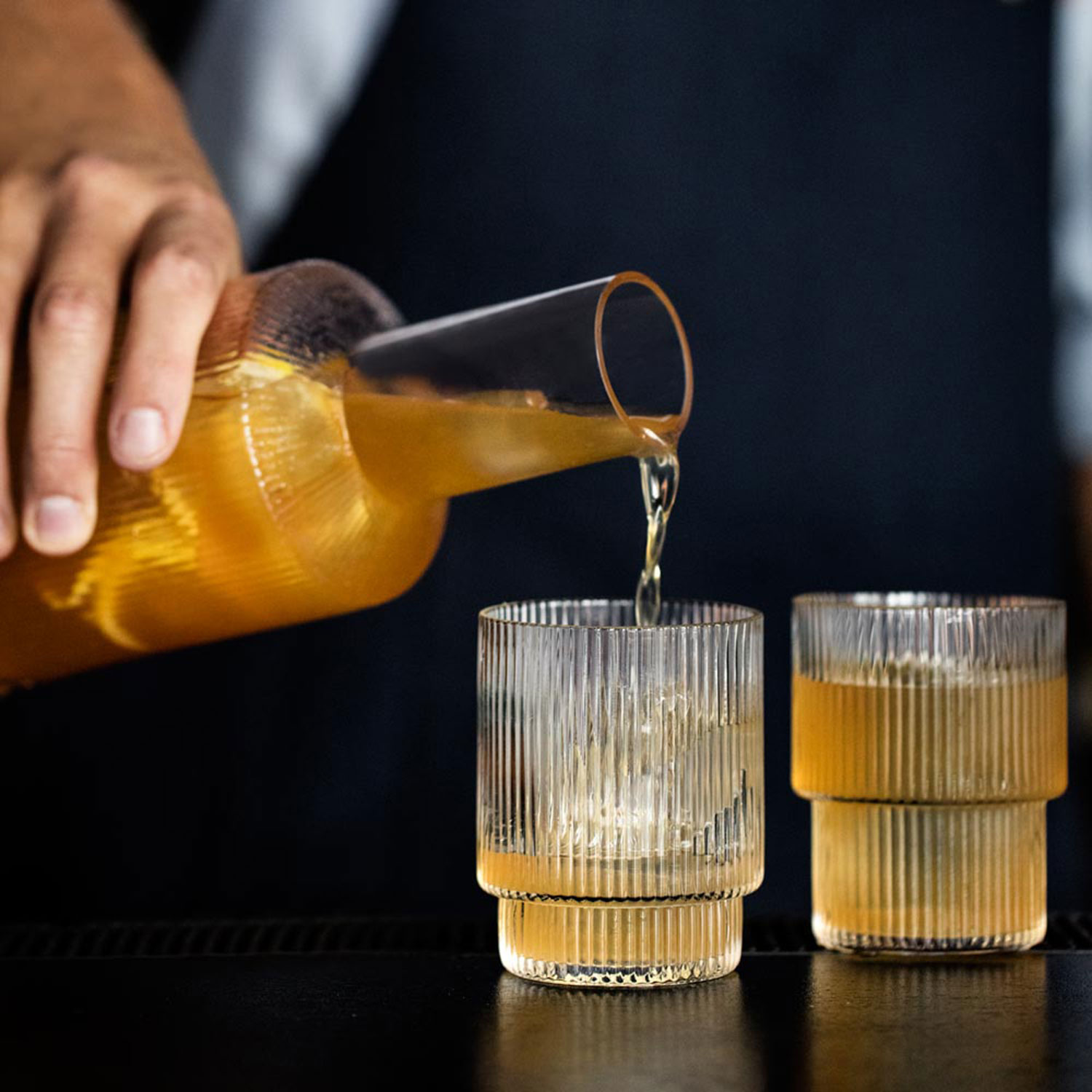 Mouth-blown into the mold, this practical and beautiful wine carafe boasts a contemporary rippled design. Meticulously crafted to elevate the natural aeration process of your wine, the carafe provides ample surface area and is designed to decant one liter of wine, while still accommodating larger volumes if desired.