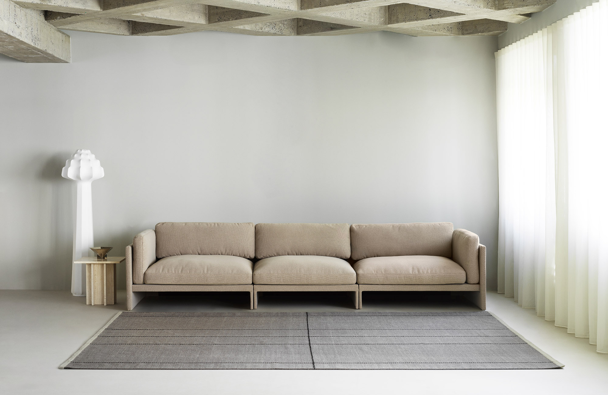 Level Rug and Seam Rug are inspired by tailoring techniques, presenting an intricate balance of experimentation and precision informed by the designer’s background in fashion. The result is two distinct rug collections that feel both timeless and innovative. Seam Rug is hand-woven from 100% wool and features a distinctive stitched pattern. Available in four different sizes, Seam also comes in two different color options of complementing Grey or Blue tones.