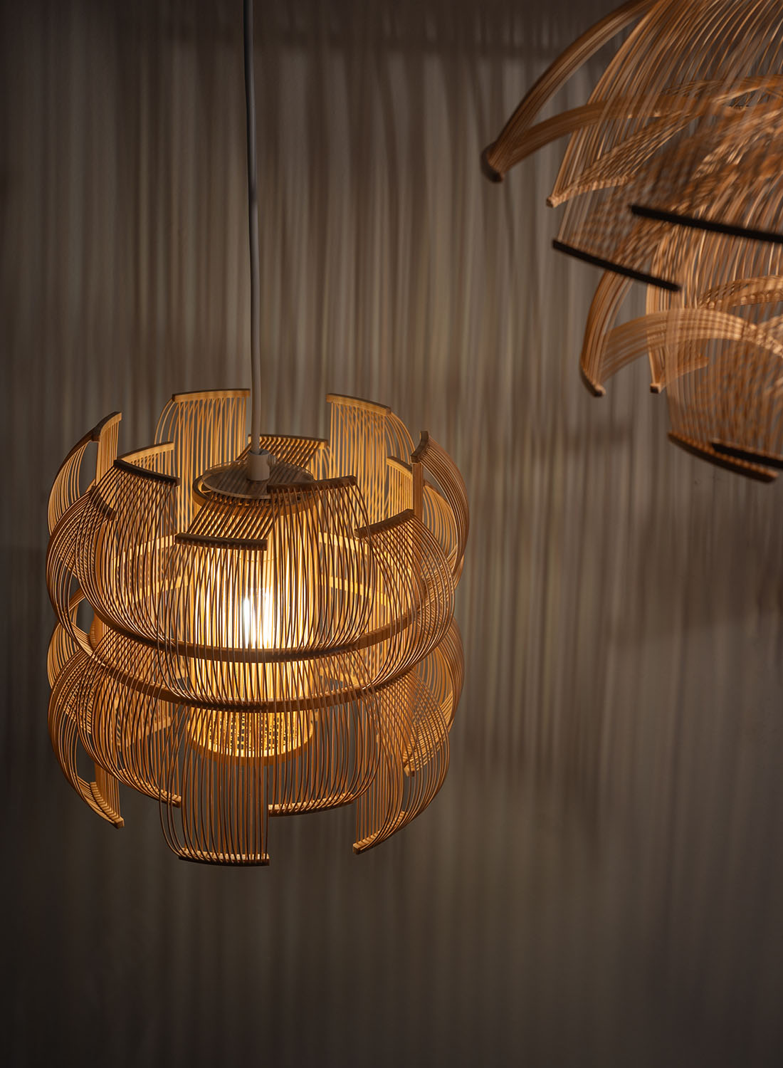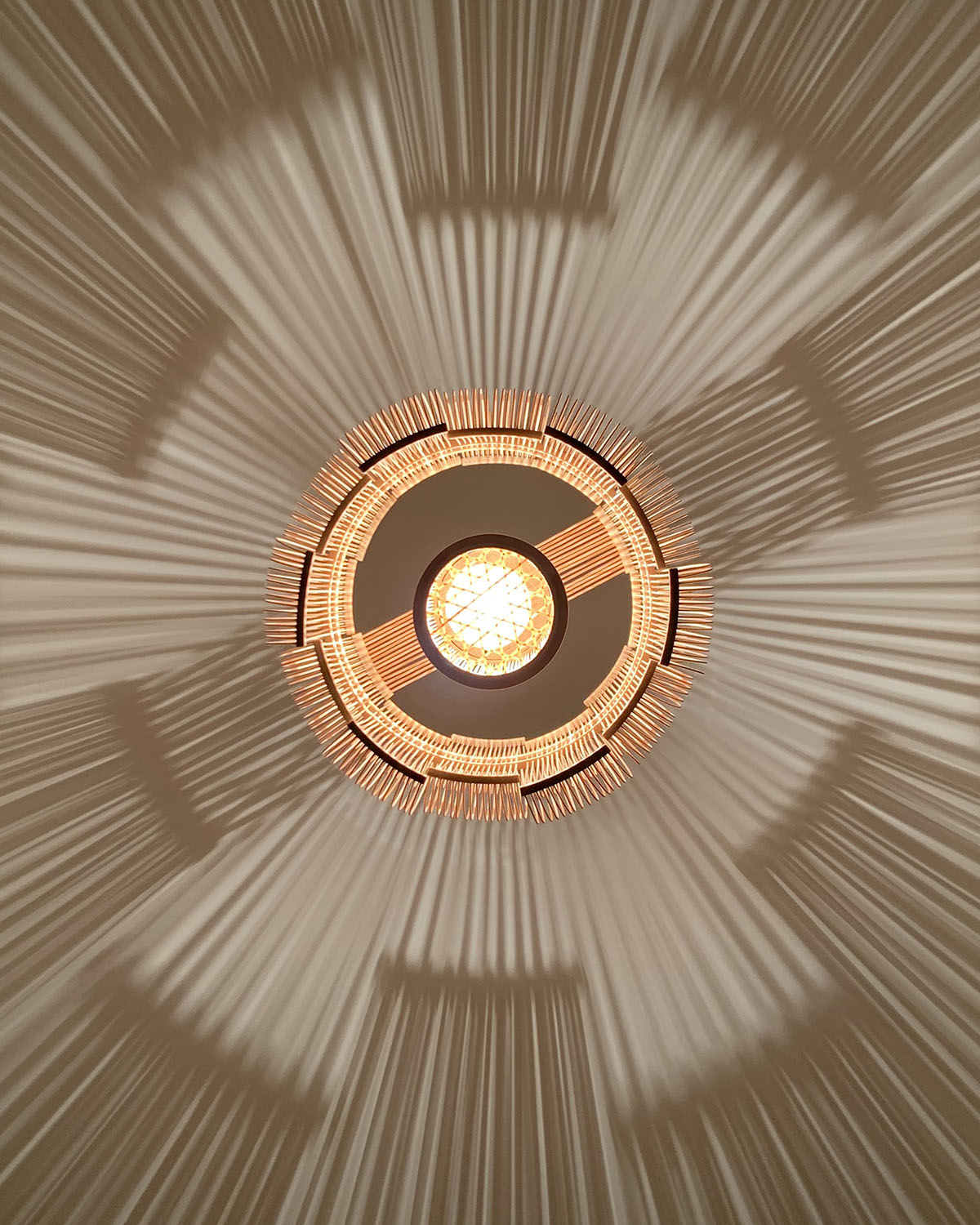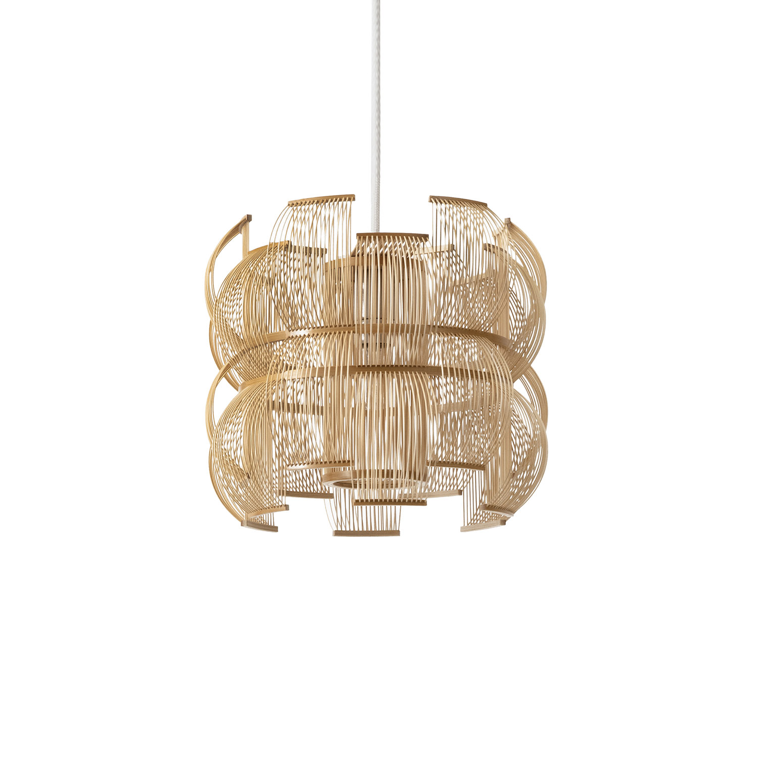 The SEN pendant is a truly unique light sculptures that will add a light and shadow play in any setting. Also available as a table lamp. Sen means lines in Japanese and the many bamboo strips bent into shape creates lines as well as shadow. The craftmanship of the lamps builds on the traditional art of takesensuji, which is a technique traditionally used to make insect cages and paper lanterns, while adding a modern look and use. The pendant is carefully handcrafted in Japan by the artist Tani Toshiyuki together with bamboo masters using roughly 600 bamboo strips.