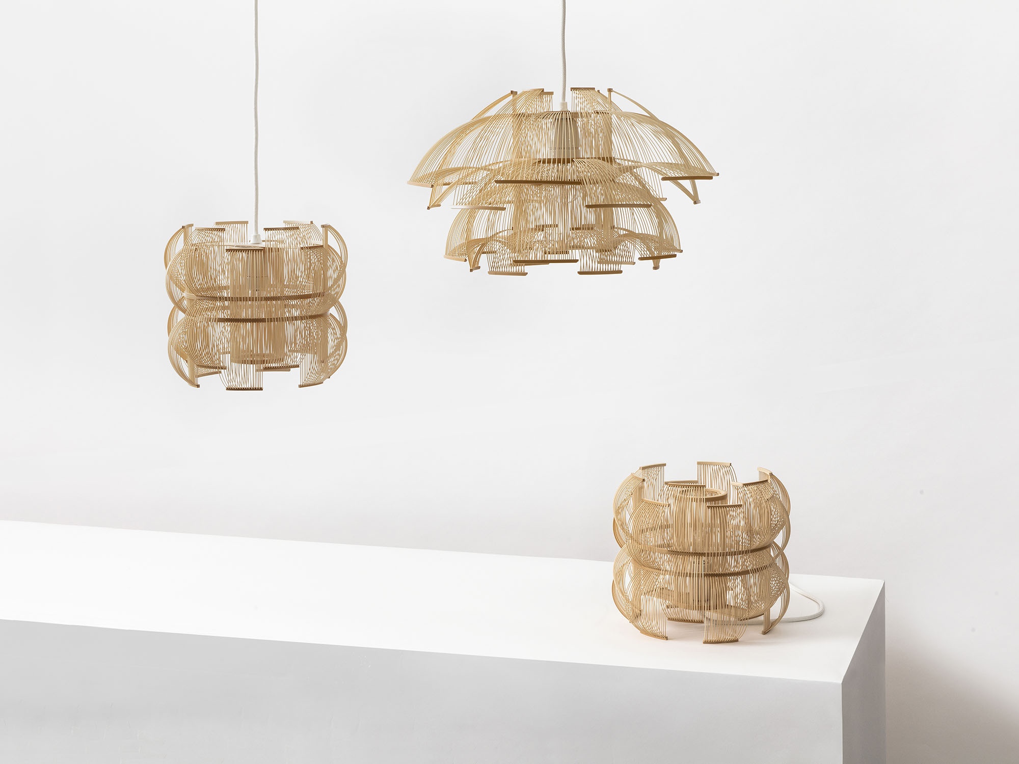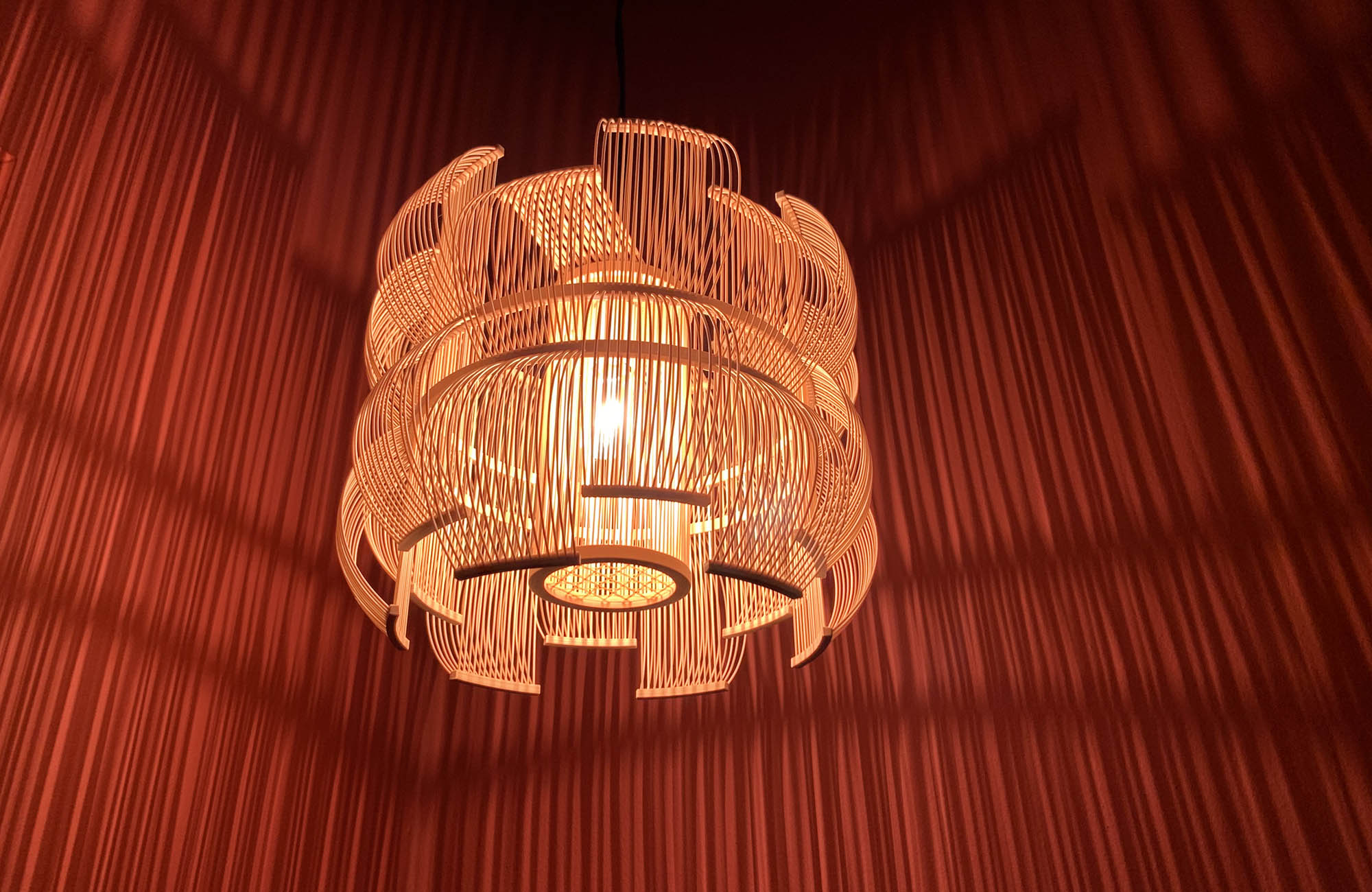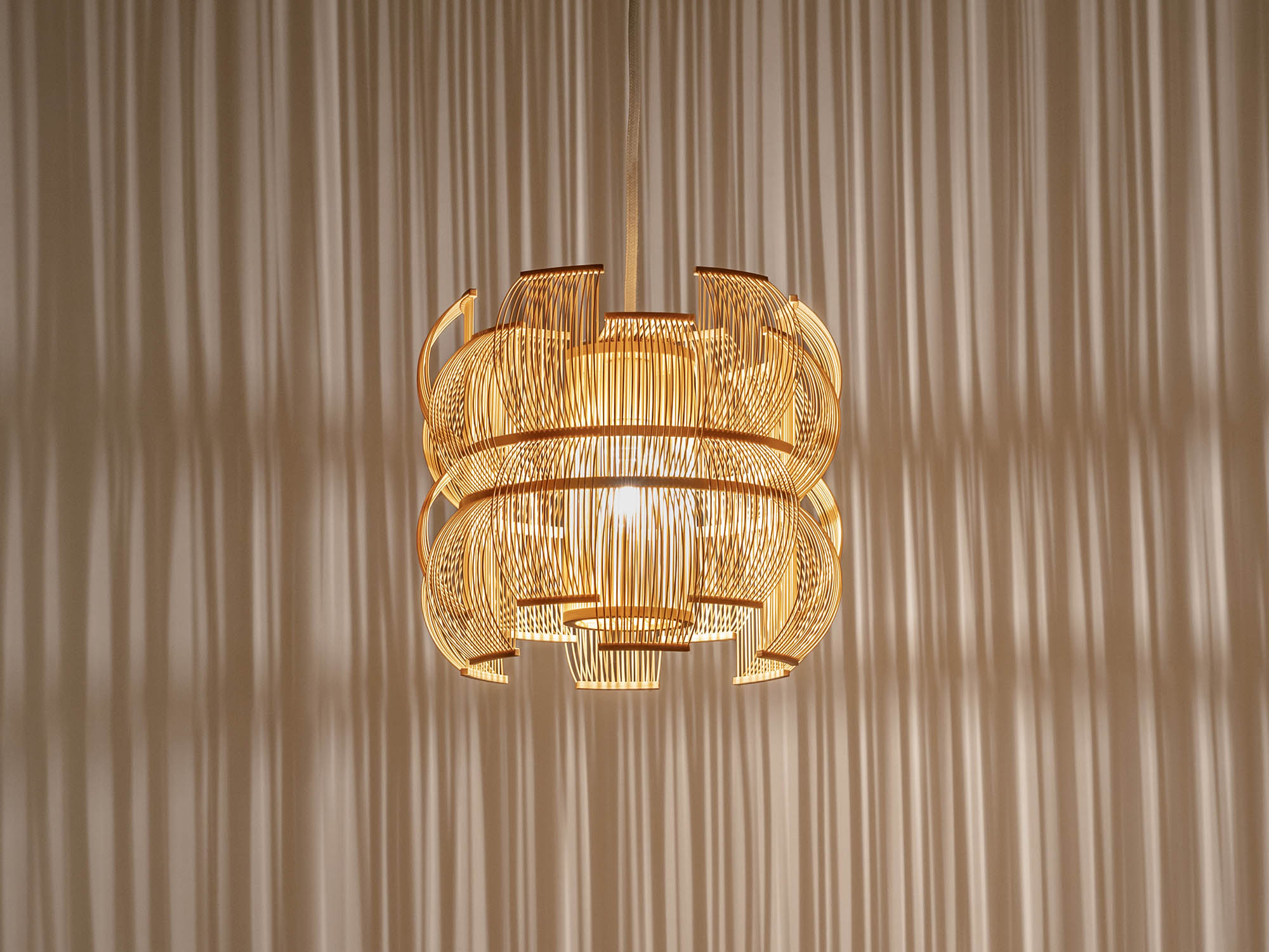 The SEN pendant is a truly unique light sculptures that will add a light and shadow play in any setting. Also available as a table lamp. Sen means lines in Japanese and the many bamboo strips bent into shape creates lines as well as shadow. The craftmanship of the lamps builds on the traditional art of takesensuji, which is a technique traditionally used to make insect cages and paper lanterns, while adding a modern look and use. The pendant is carefully handcrafted in Japan by the artist Tani Toshiyuki together with bamboo masters using roughly 600 bamboo strips.
