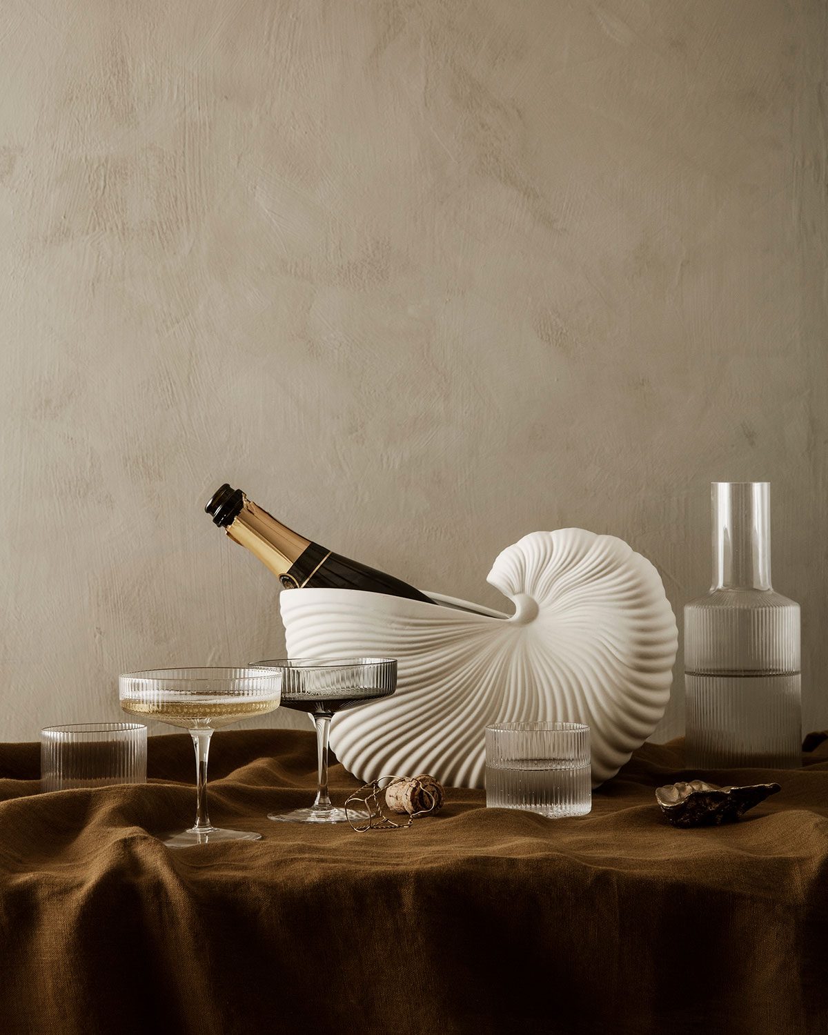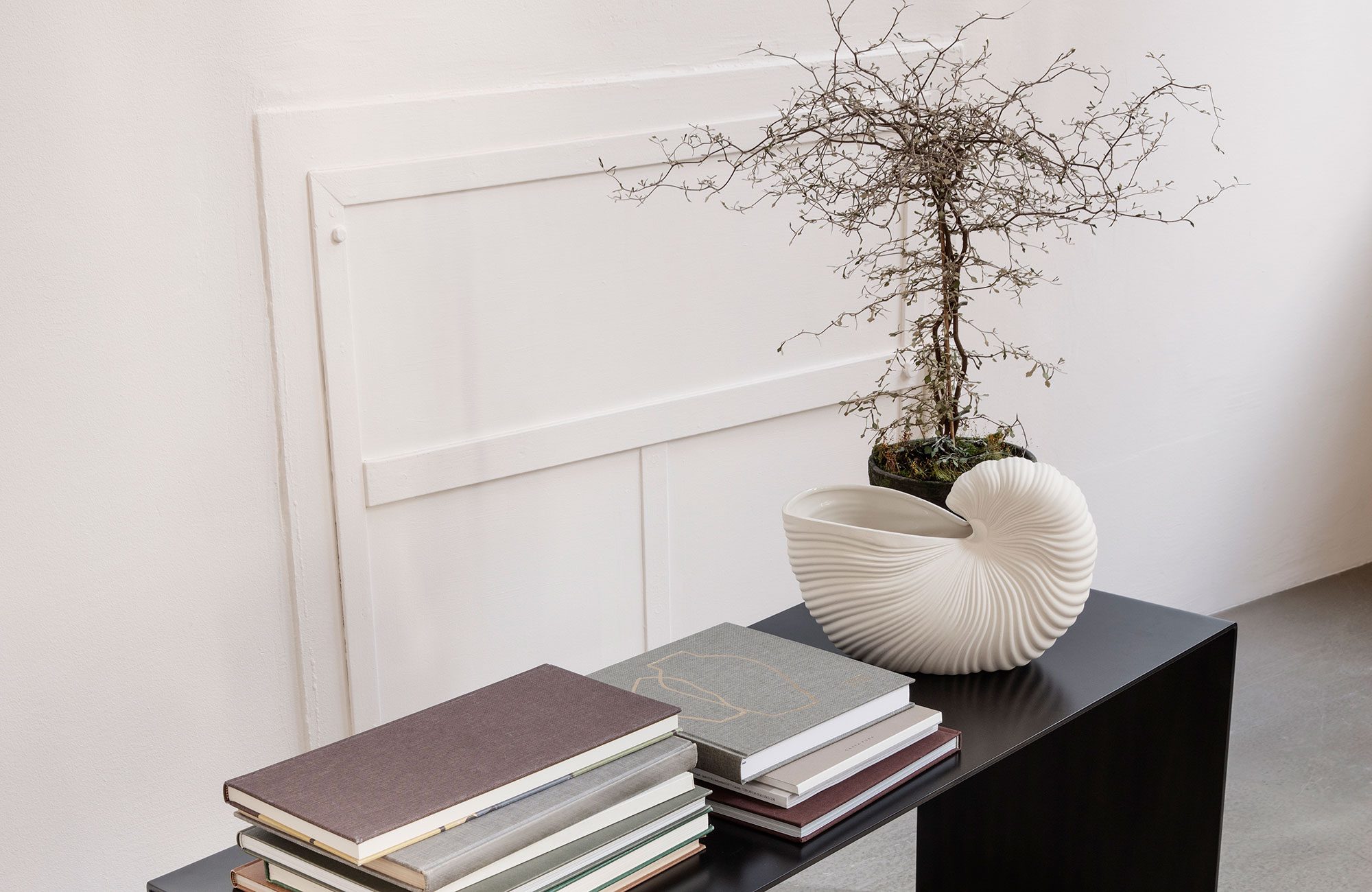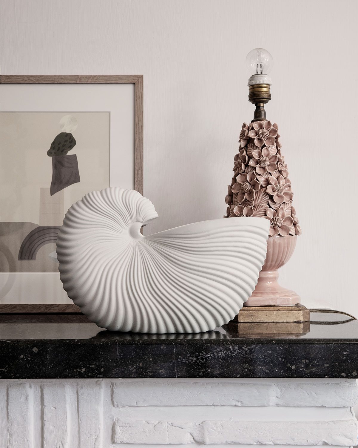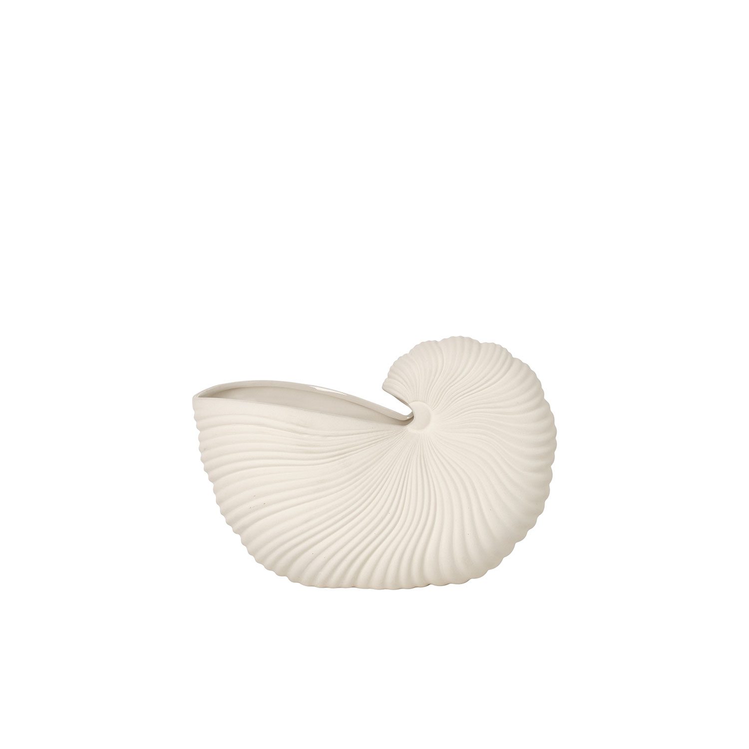 Filled with your favourite flowers or by its own, this pot shaped like a nautilus shell merges natural shapes with contemporary design. With a matte outside and glazed inside, it adds delicate detail to any room, simple and sculptural all at once.