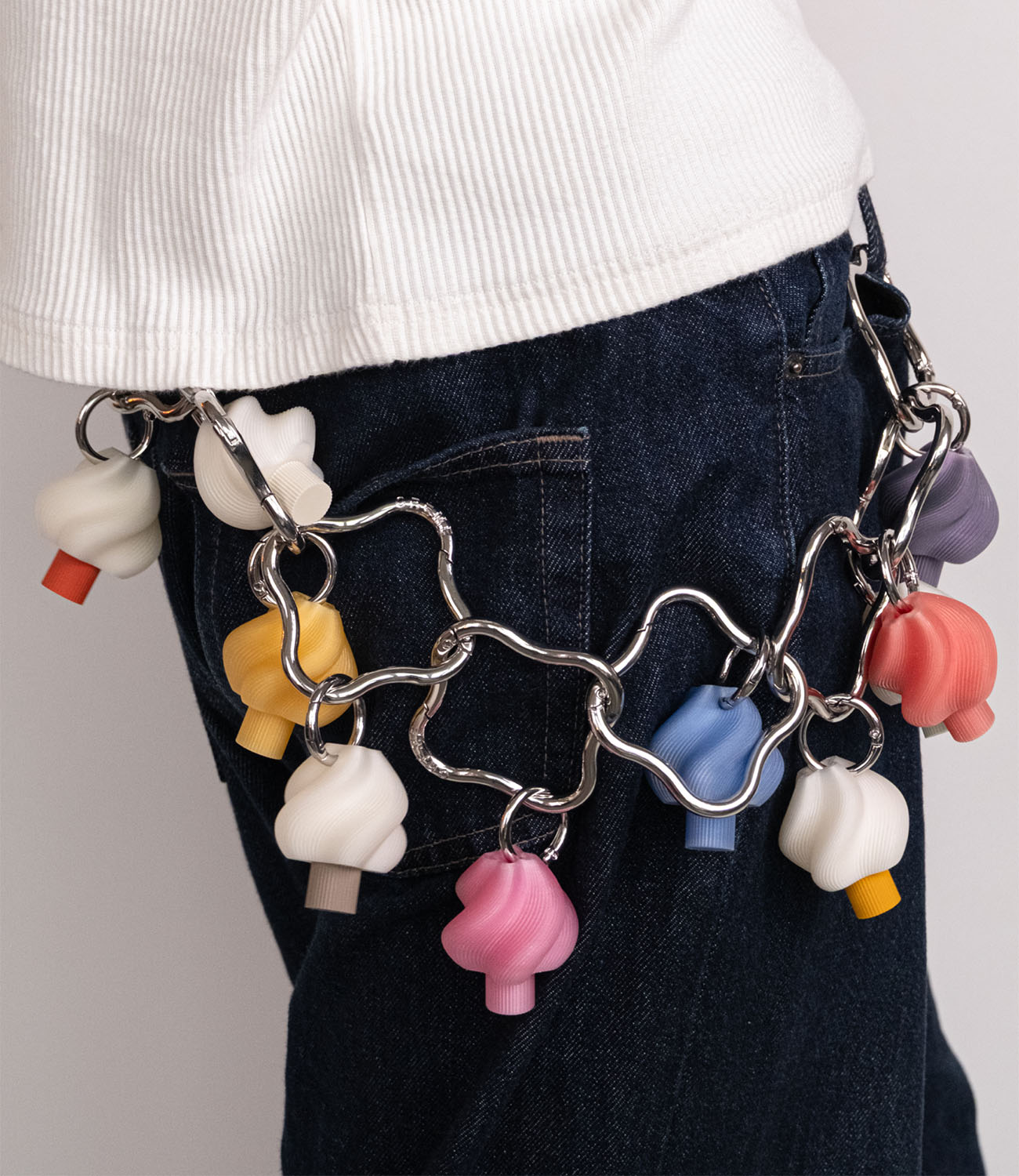 Turning our signature swirl into a charm. Each piece is produced to order in our Stockholm studio from recycled PLA. Including a flower shaped metal carabiner with silver gloss finish engraved with the CRÈME logo.