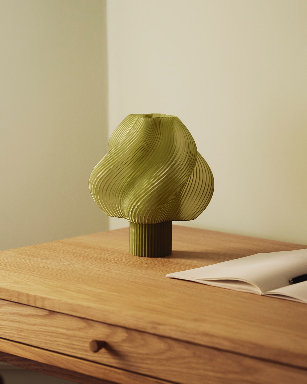The Soft Serve Portable is a cordless, battery-powered version of our iconic Soft Serve Lamp. Inspired by the swirling forms of soft serve ice cream, it brings a playful softness to any space, indoors or out.Smaller in size and designed for flexibility, it comes with a magnetic USB charging cable and built-in rechargeable battery—perfect for bookshelves, outdoor dinners, or cosy corners where cables can’t reach. A 3-step dimmable function lets you adjust the light to suit your mood.Each lamp is 3D-printed to order in our Stockholm studio using recycled PLA, minimising waste and embracing a more conscious way of creating.