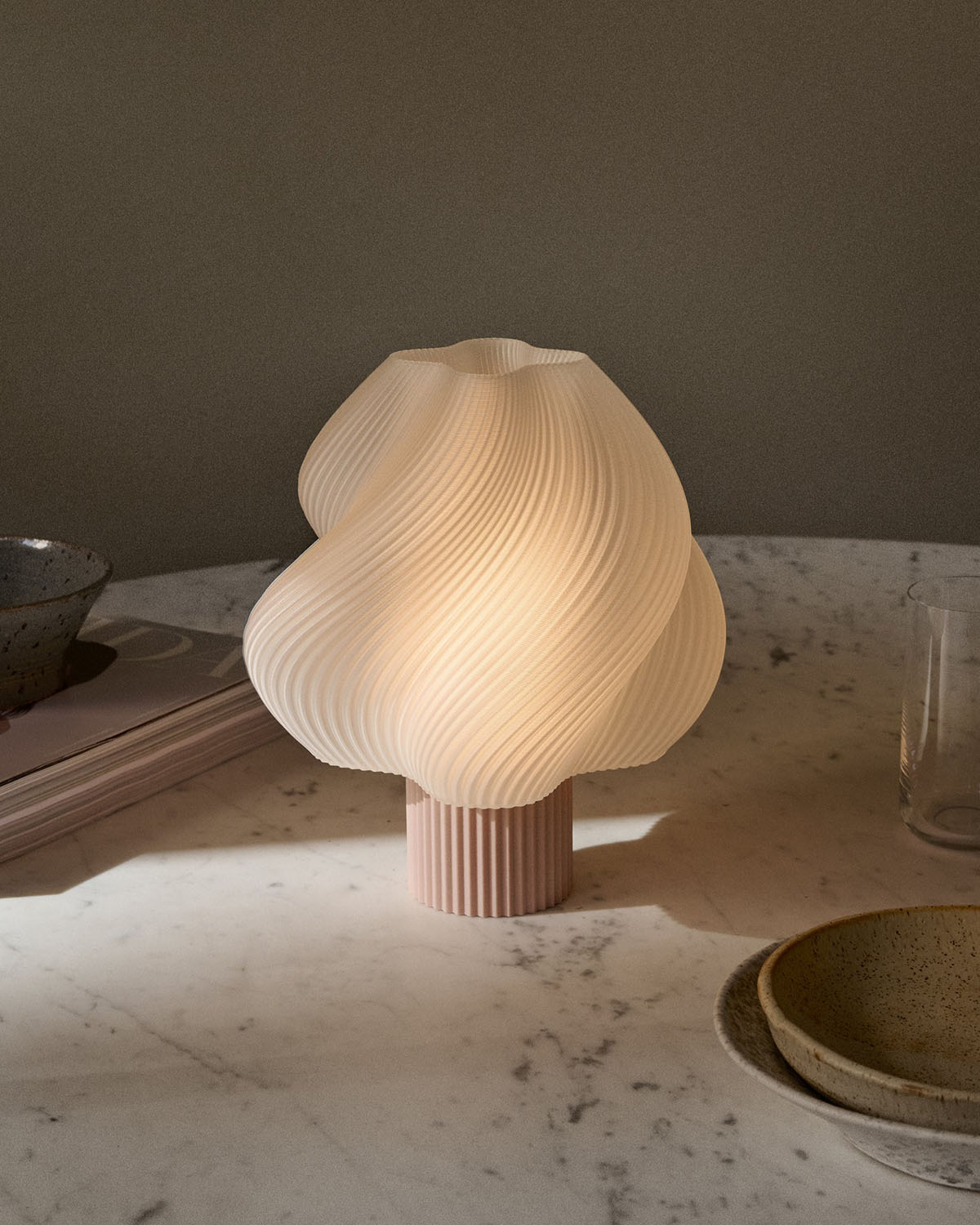 The Soft Serve Portable is a cordless, battery-powered version of our iconic Soft Serve Lamp. Inspired by the swirling forms of soft serve ice cream, it brings a playful softness to any space, indoors or out.Smaller in size and designed for flexibility, it comes with a magnetic USB charging cable and built-in rechargeable battery—perfect for bookshelves, outdoor dinners, or cosy corners where cables can’t reach. A 3-step dimmable function lets you adjust the light to suit your mood.Each lamp is 3D-printed to order in our Stockholm studio using recycled PLA, minimising waste and embracing a more conscious way of creating.