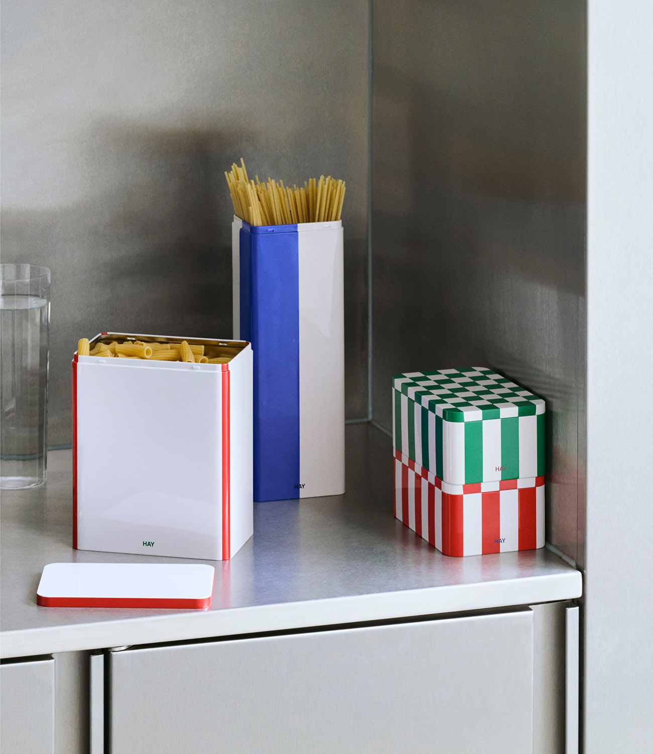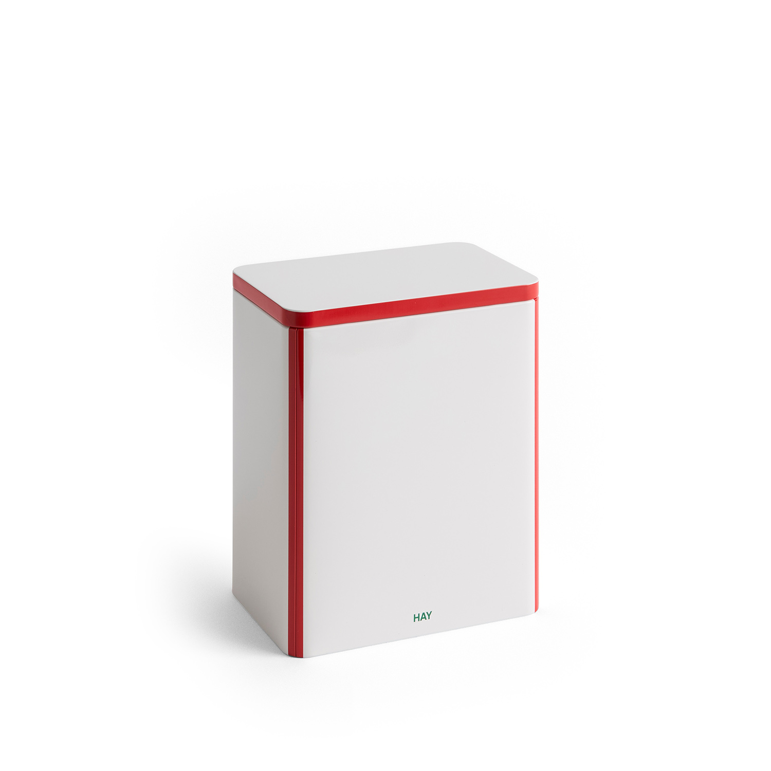 HAY’s Tin Containers are a collection of functional and decorative storage boxes featuring colourful graphic patterns. The lid and container fit smoothly together, creating a sleek design that is ideal for dry food storage. Available in a wide assortment of sizes, shapes, and designs, the Tin Containers can be displayed decoratively on shelves or tables around the home, making them perfect for storing and organising various items.