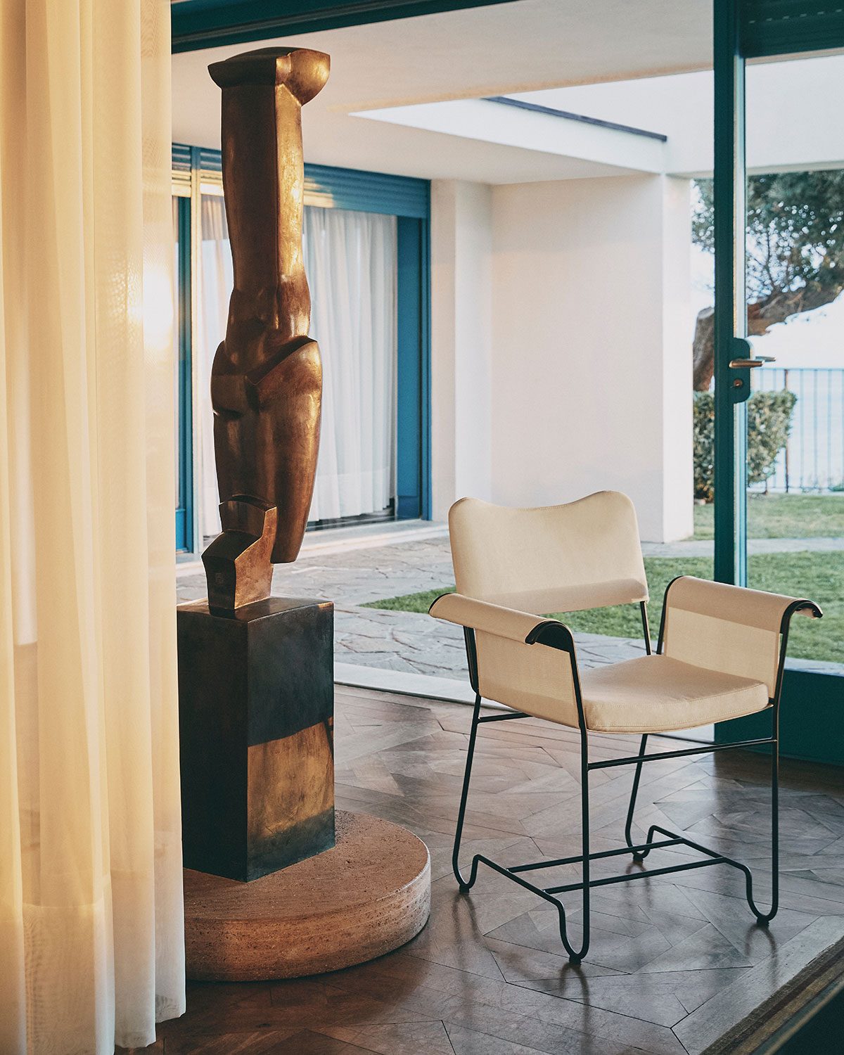 Created in the 1950s by the Hungarian-born French master of postwar design, Mathieu Matégot, the Tropique Collection of outdoor furniture captures the timeless glamour and exotic luxury of outdoor living on the Côte d’Azur in the mid-20th century. More than five decades after it was first designed and 20 years since the death of its designer, GUBI is proud to pay homage to Mathieu Matégot with the relaunch of one of his most popular collections. Combining material simplicity with a decadent aesthetic, Tropique comprises two dining chairs and a dining table. The frame of each piece is made from stainless steel rods, incorporating a distinctive statement curve at the feet – a signature of Matégot’s style and a feature that unites the collection into a clear and cohesive whole.