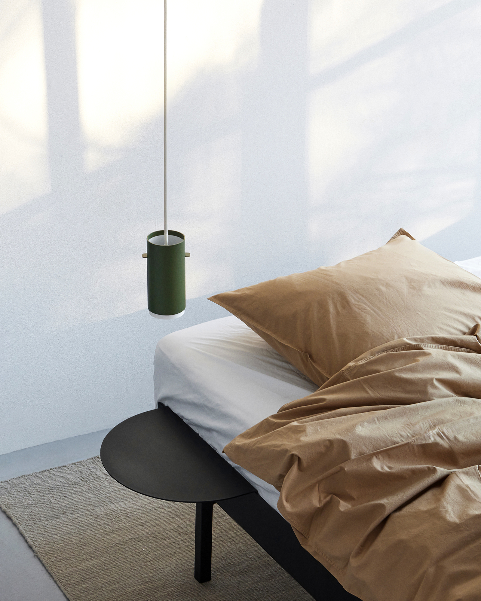 Tube Pendant is formed from an aluminium tube lined with a simple piece of translucent paper. The top shade can be easily adjusted to allow light to be diffused upwards, while the paper at the lower end can be extended to give the edge of the lamp a soft, warm glow.