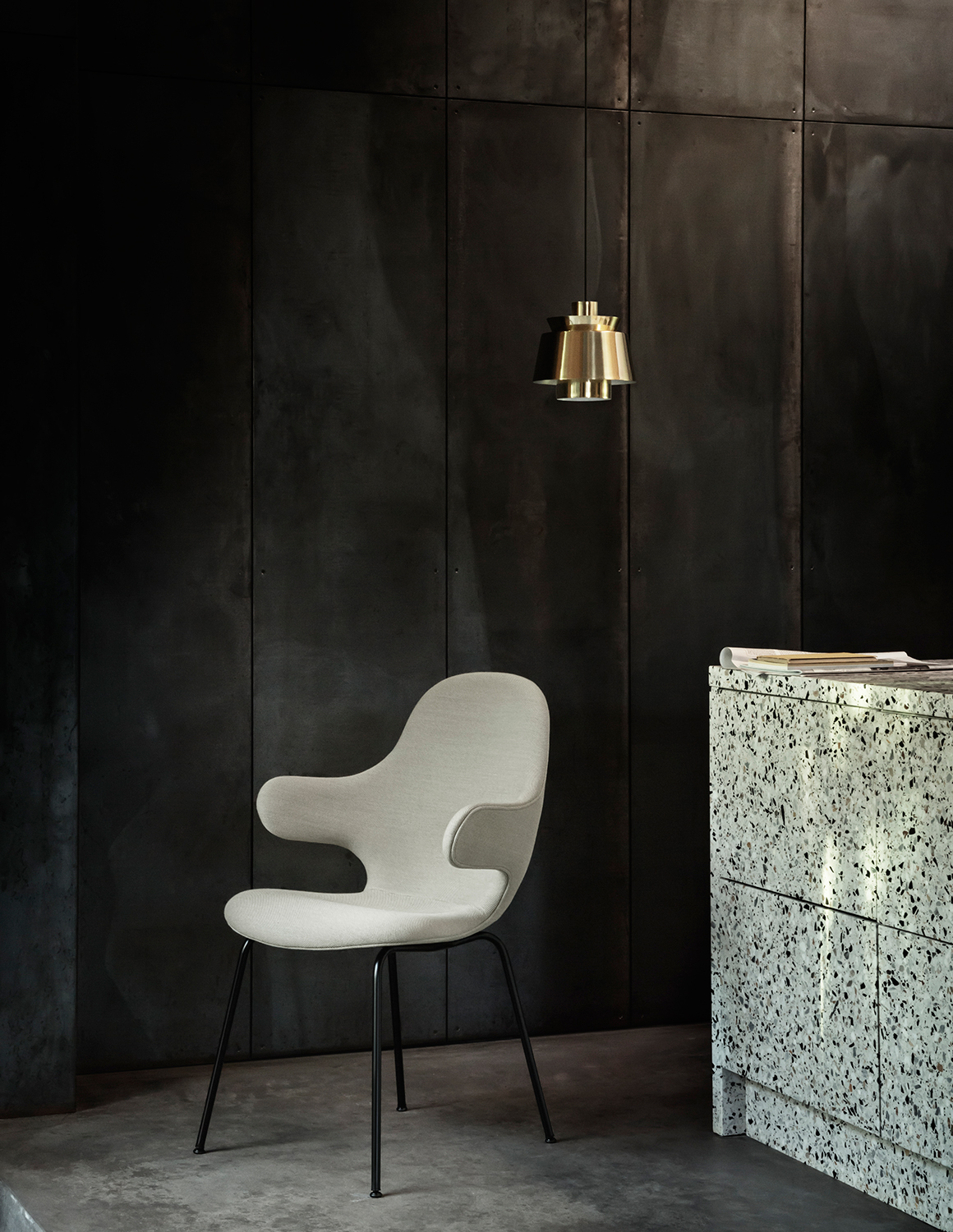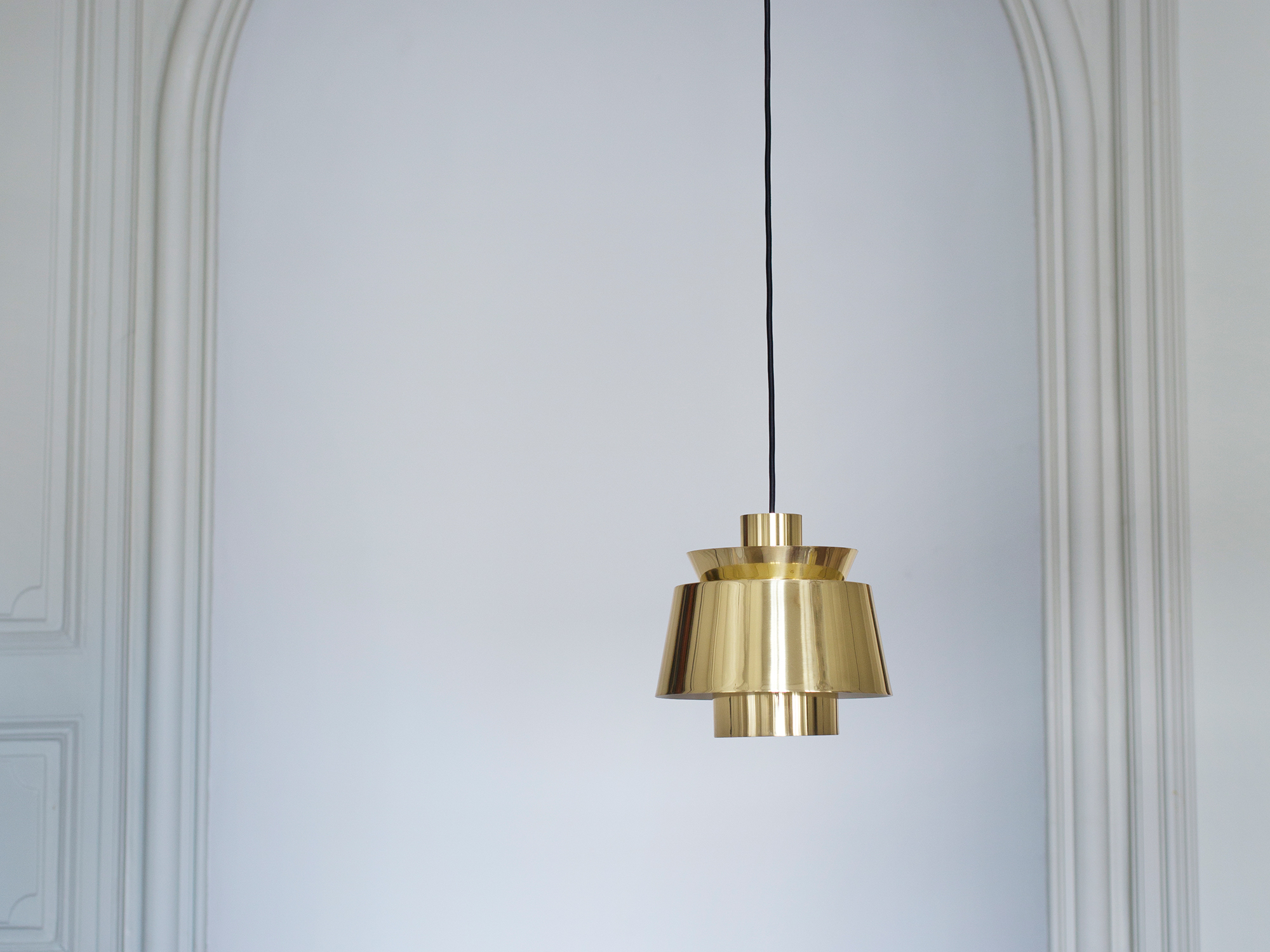 To Jørn Utzon, his father’s naval engineering drawings became a lifelong fascination with ships and boats, along with light. More than a decade before Jørn Utzon created his masterpiece, the Sydney Opera House, he put his child- hood fascination into this pendant, combining successfully the smoothness of the lines of a ship with the source of light for the first time. & The choice of white or polished chrome finish reminds one of the waves and the northern light.