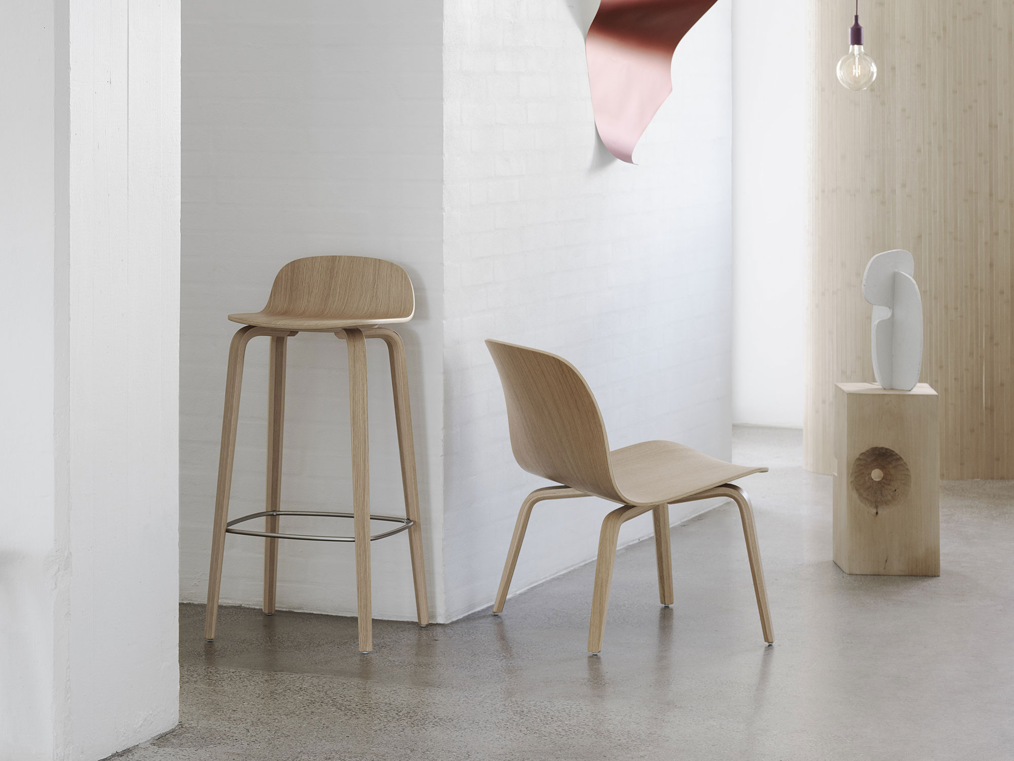 The Visu Lounge Chair provides maximum comfort in an unconventional Scandinavian silhouette with a sturdy base and shell in form-pressed veneer.