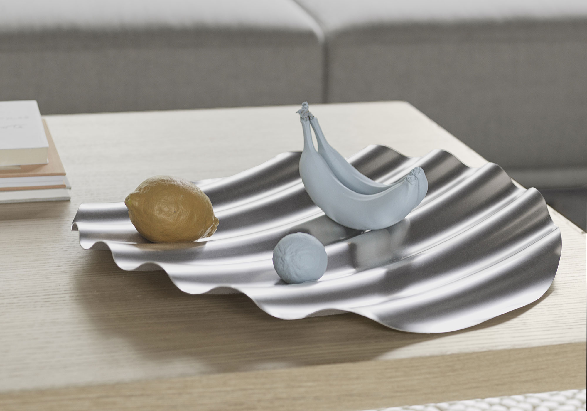 The Wave Tray brings a refined sentiment to the otherwise raw materiality of metal. Through its organic form that has been shaped in stainless steel, the expression is inspired by the undulations of a wave. The Wave Tray has a simple yet graphic expression that, paired with its grand sizes, makes a true statement in any setting.