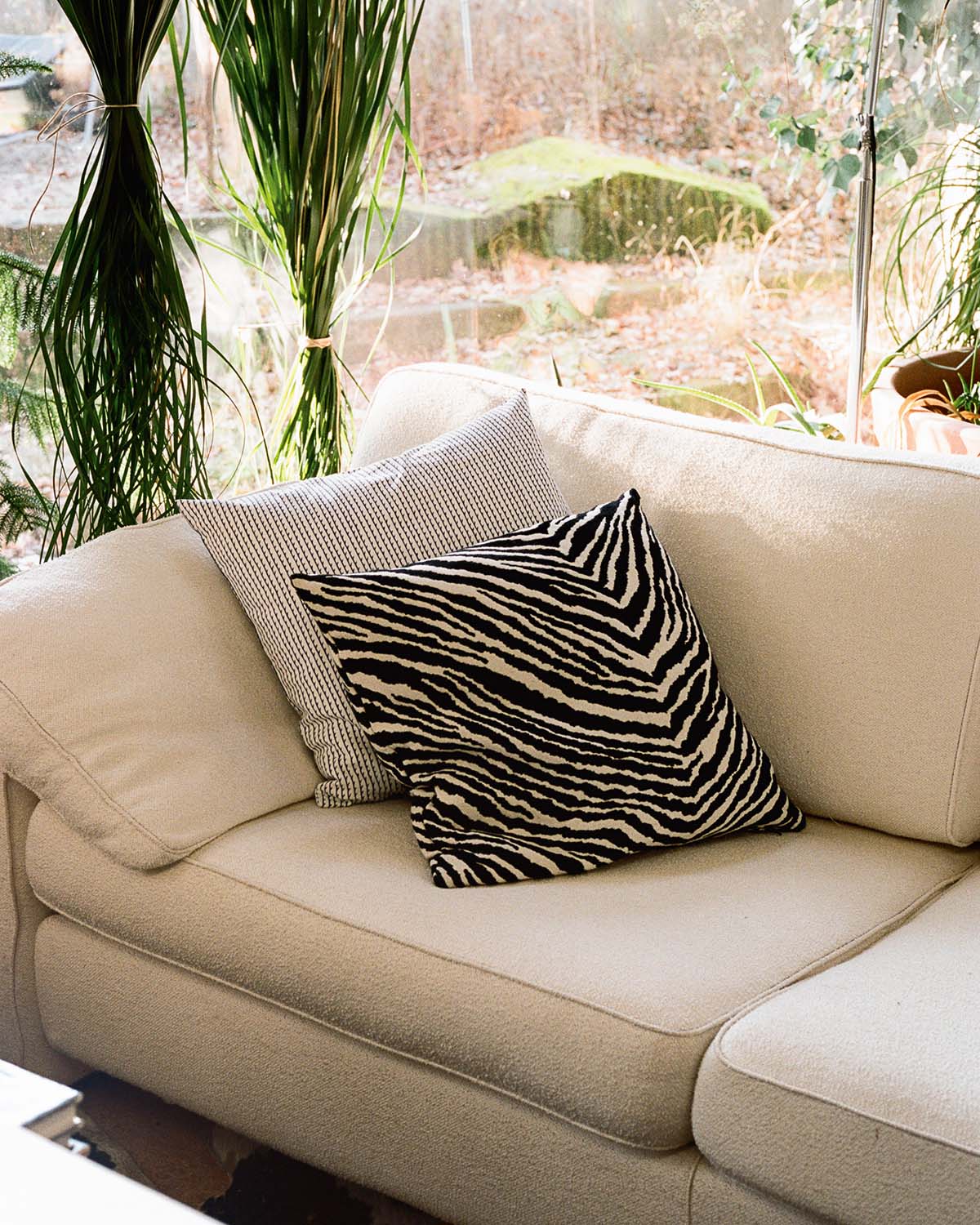 The classic Zebra fabric was originally discovered by Aino Aalto during her European travels. Incorporated in Artek interiors as early as the 1930s, Zebra is perhaps most closely identified with the iconic Armchair 400. Characterised by a soft, sensual feel and striking visual depth, this Zebra cushion cover will bring a touch of the wild to any interior.