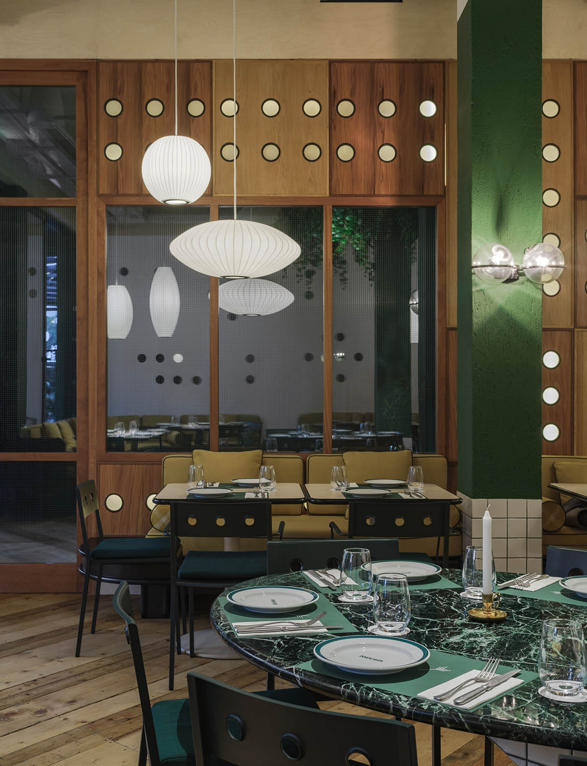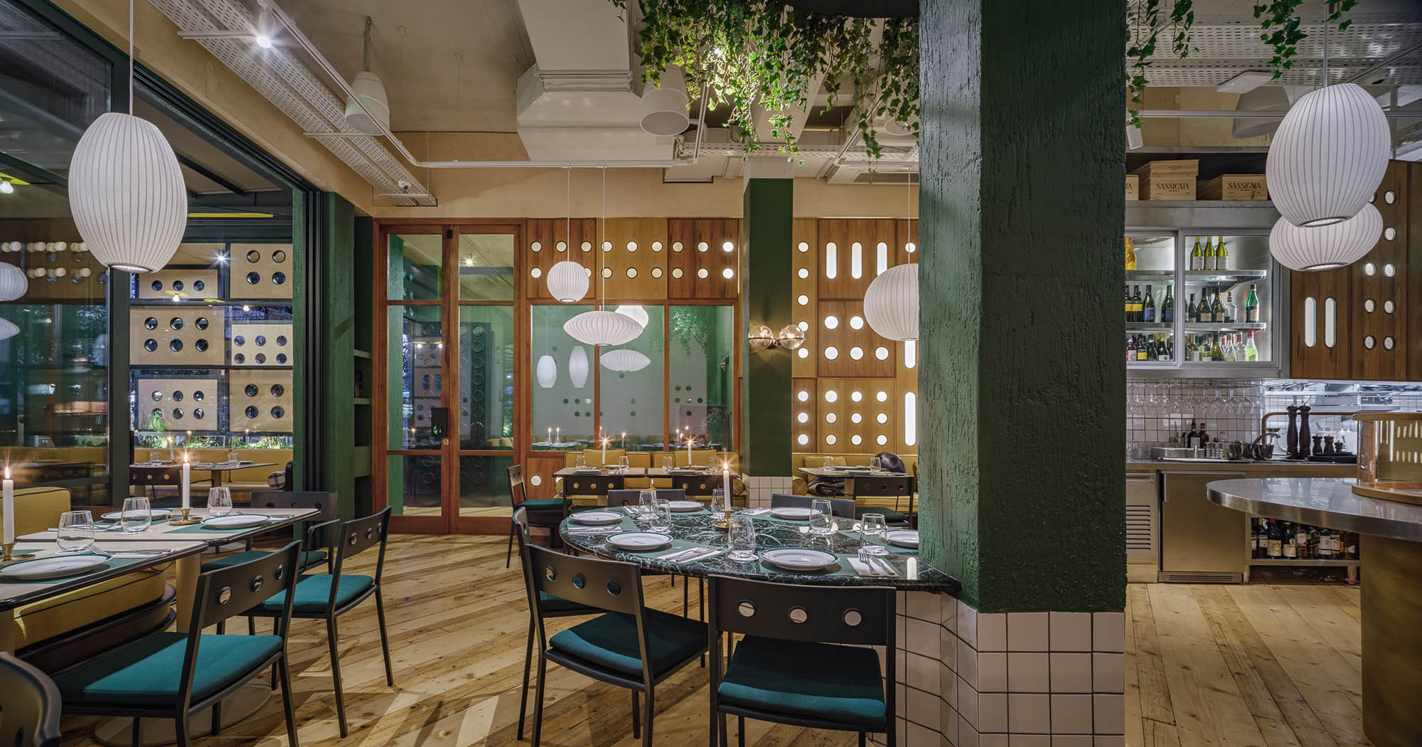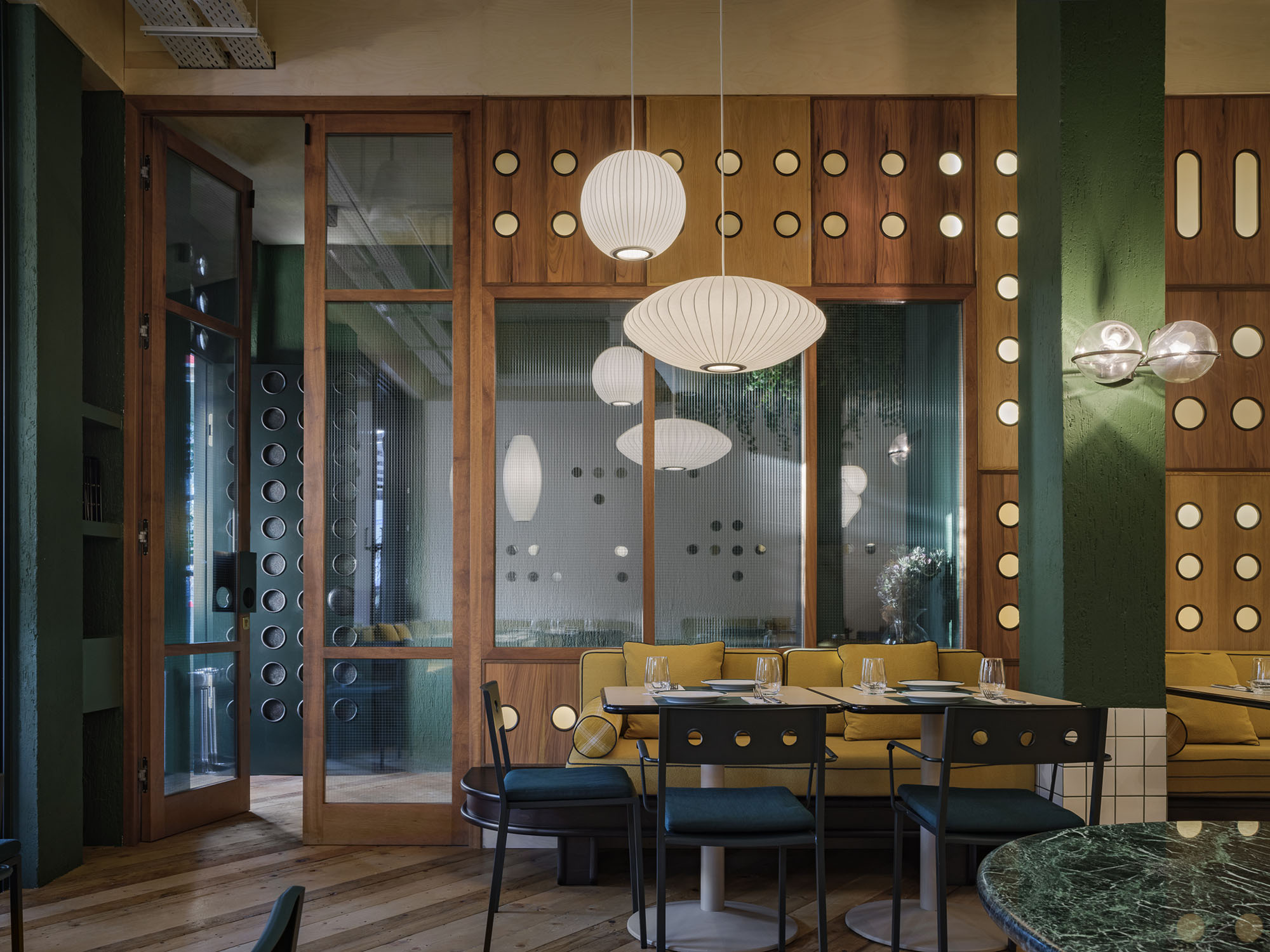 Innamorata, AthensProject: Innamorata is stylish, bright, welcoming, with a modern neo-70’s aesthetic and a large, open kitchen that complements the hall and takes up a large part of it. It is, in two words, an open-hearted restaurant designed to become a hangout.Interior Design: Vana KrimniotiProducts: Balcony chairs, Soft Edge barstools and Nelson Pendant Lamps from HAY.Photography: George MessaritakisYear: 2023